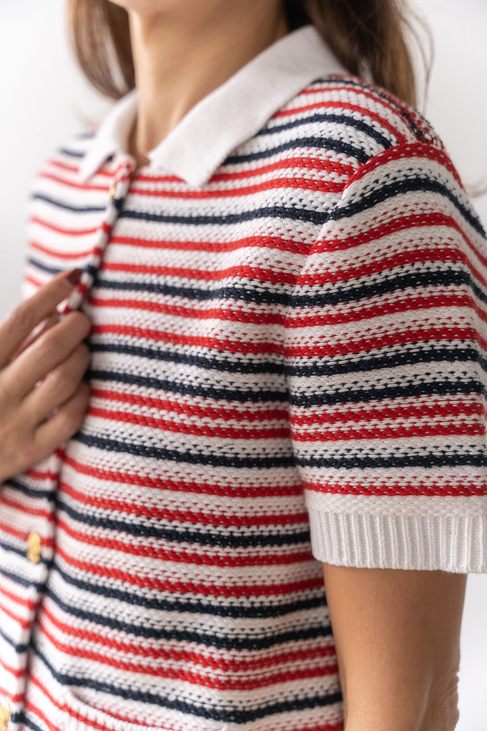 ・袖口與下襬螺紋織法細節,與衣身織法不同,整體更富有層次細節