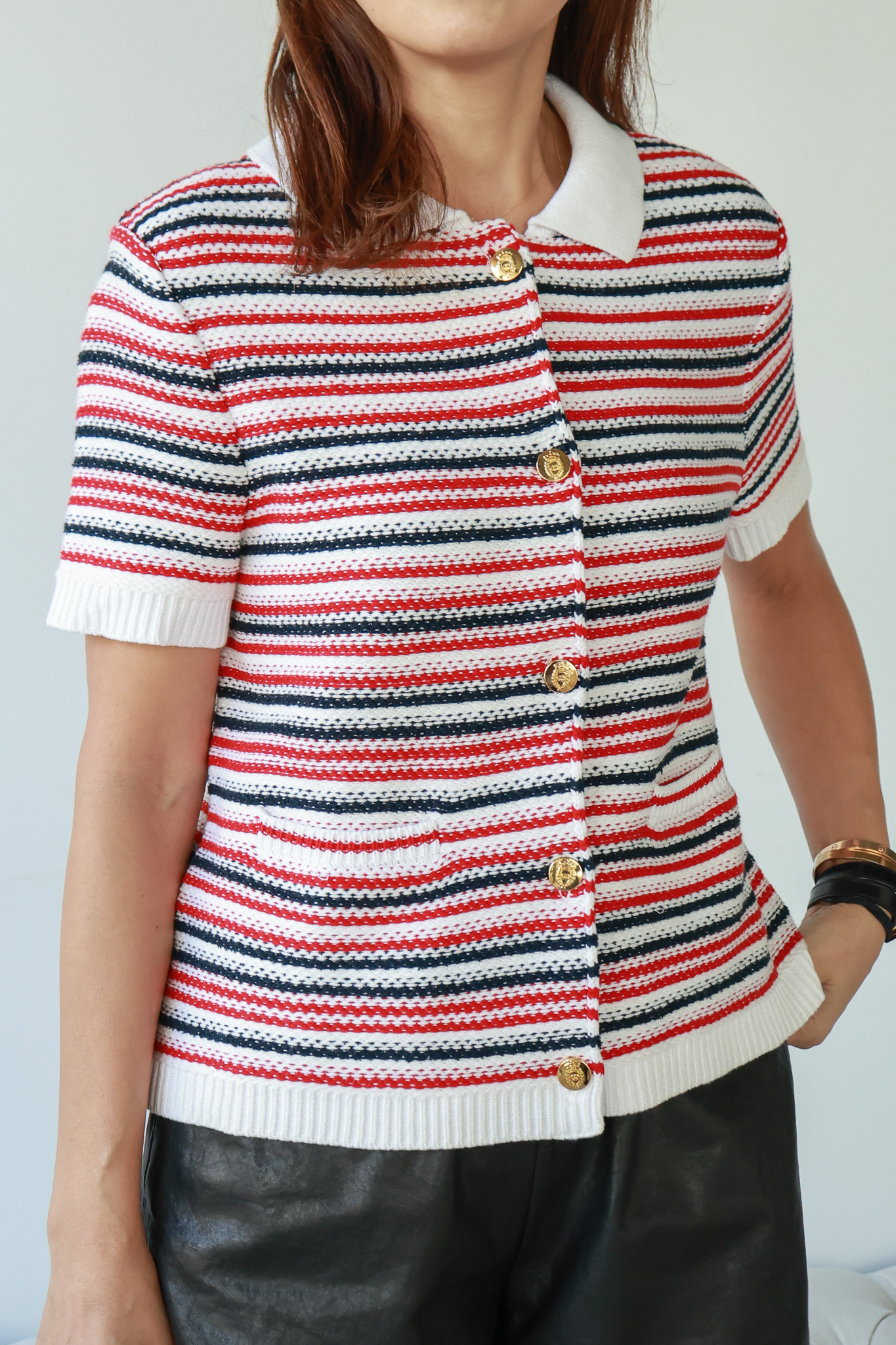 ・立體大圓金釦結合雙口袋設計,提升整體層次細節兼具實用性