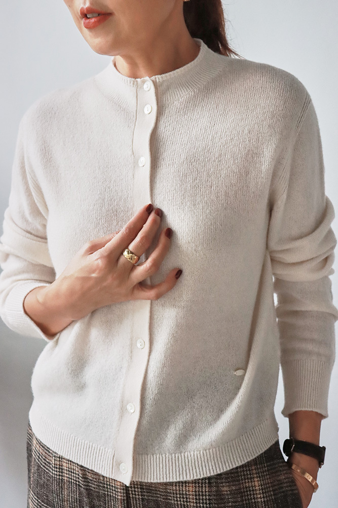 ・選用100%喀什米爾羊絨(Cashmere)的高級紗線,柔軟絨毛感,輕盈舒適不刺膚
