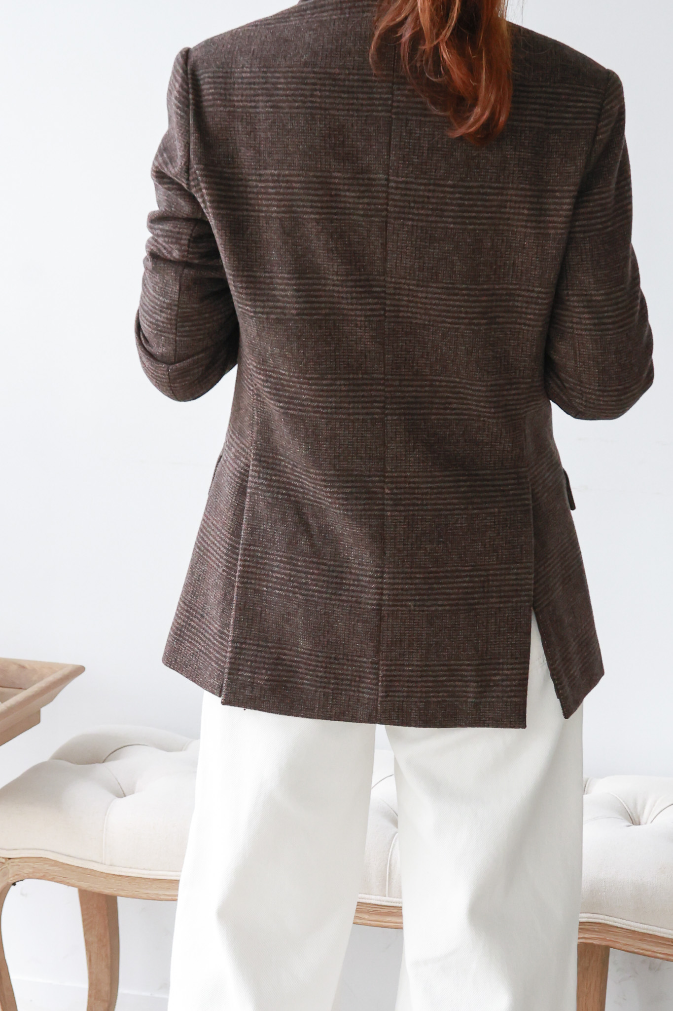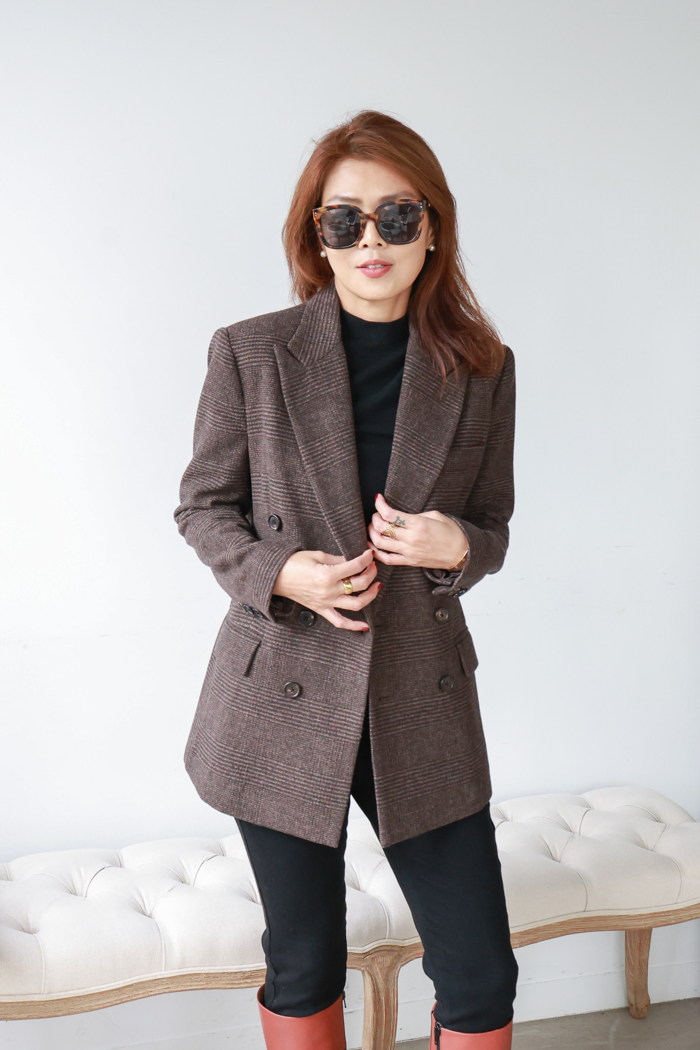 ・薄挺墊肩設計,讓肩膀線條更俐落,展現直角廓型不顯壯