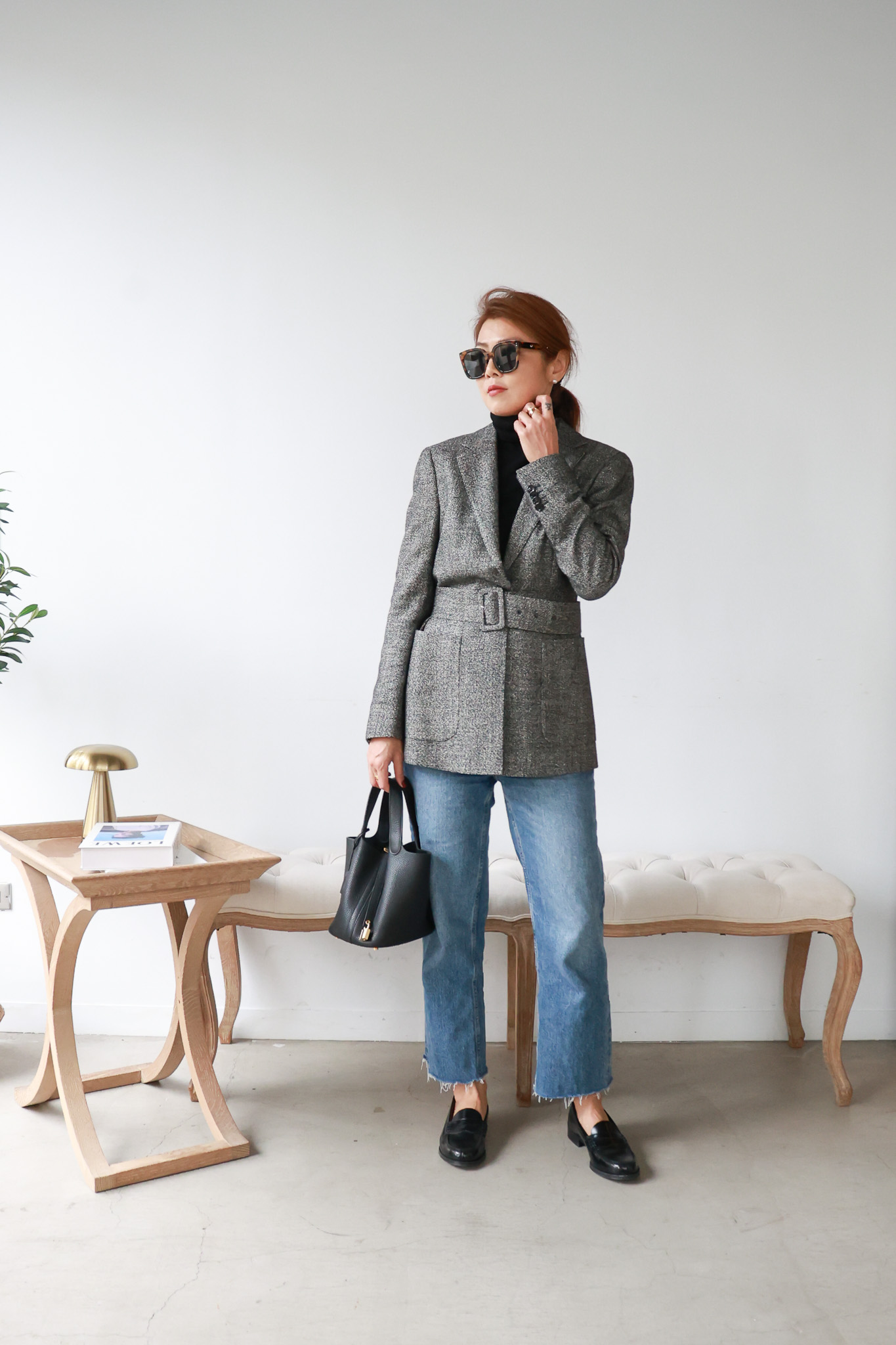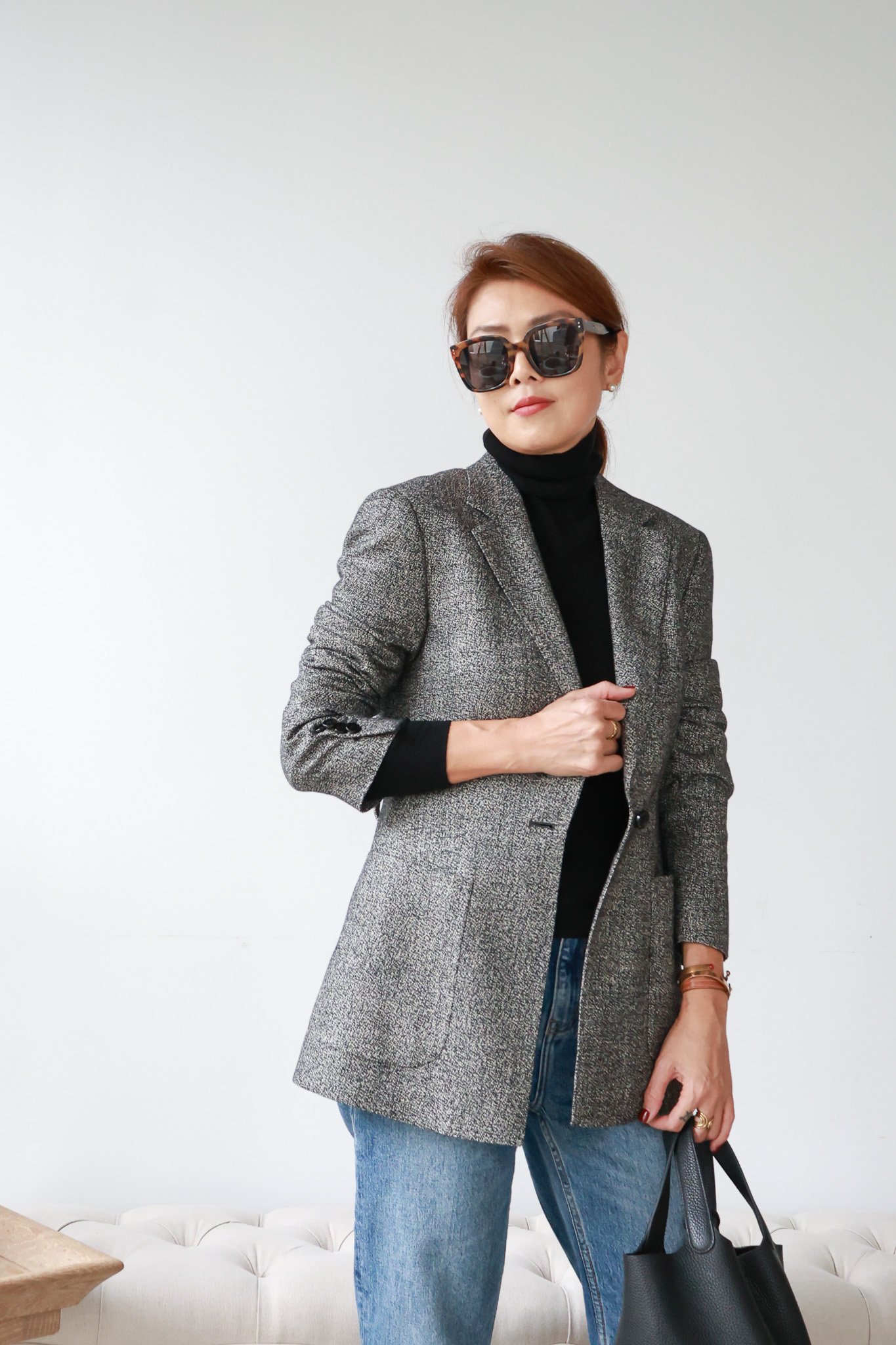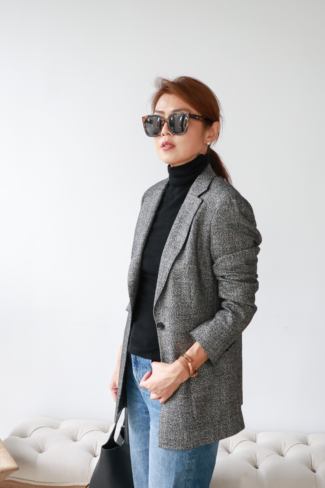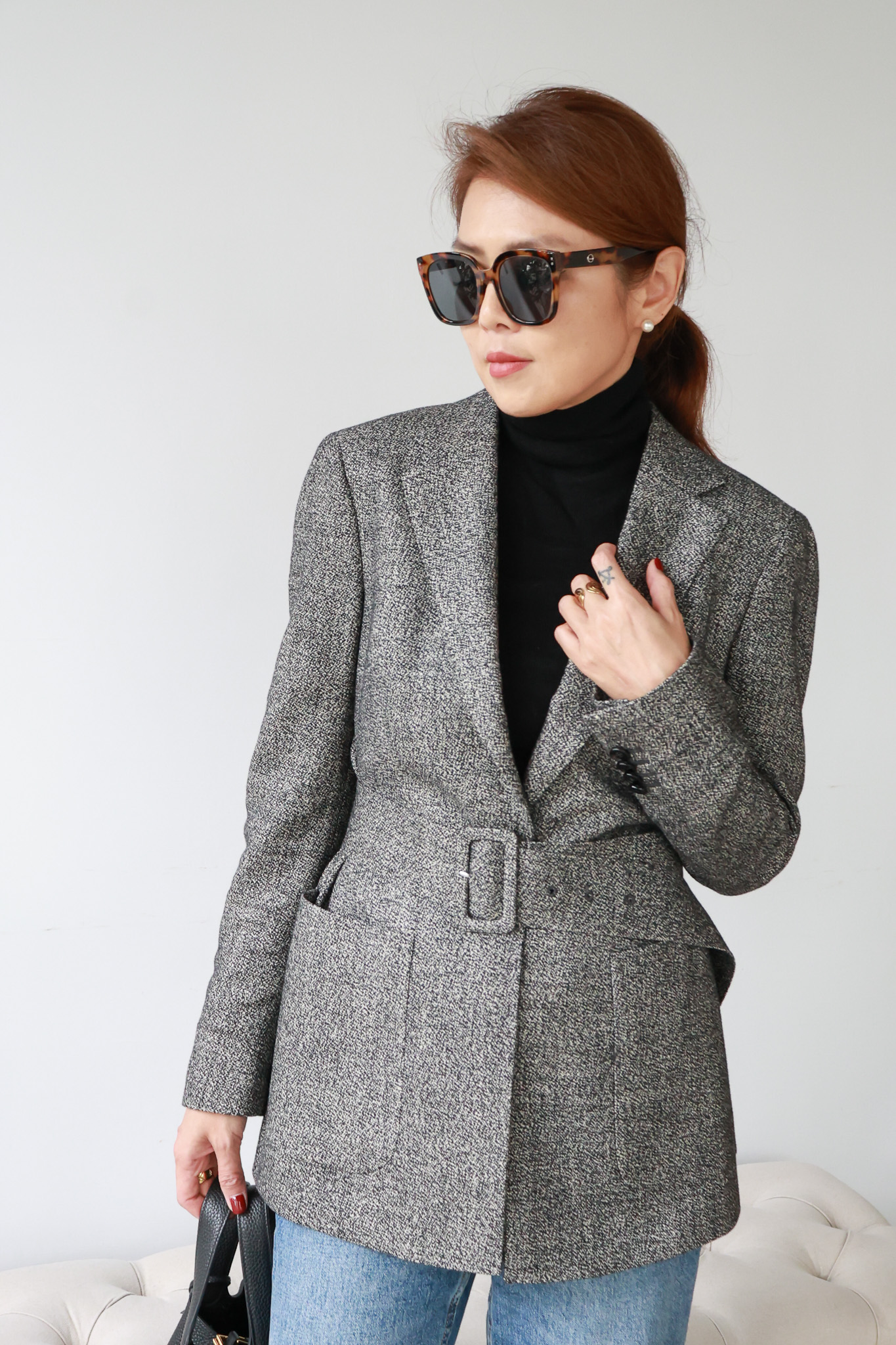 ・薄挺墊肩設計,讓肩膀線條更俐落,展現直角廓型不顯壯