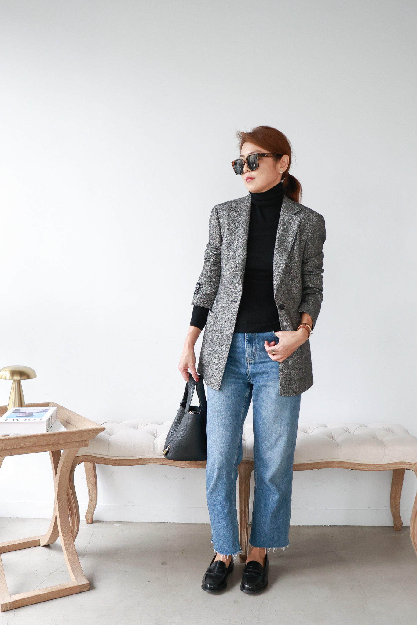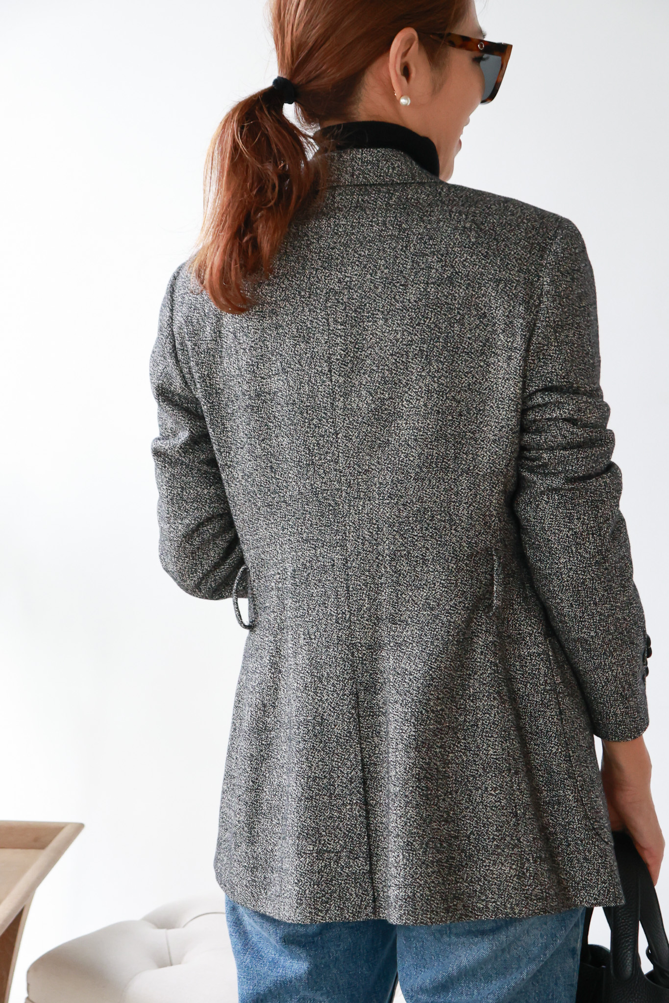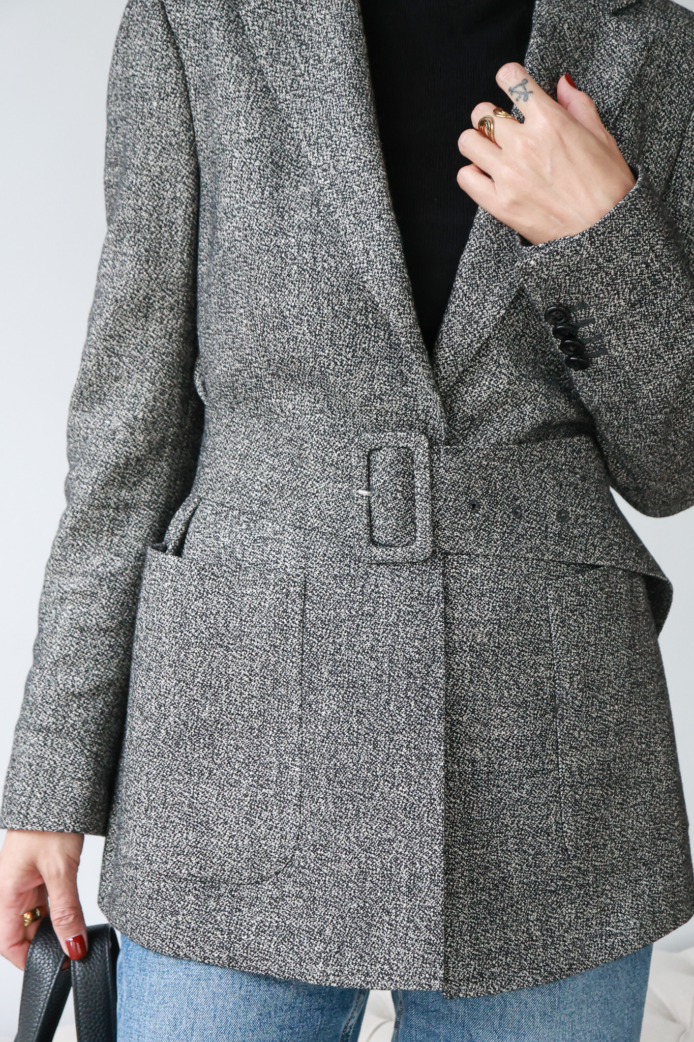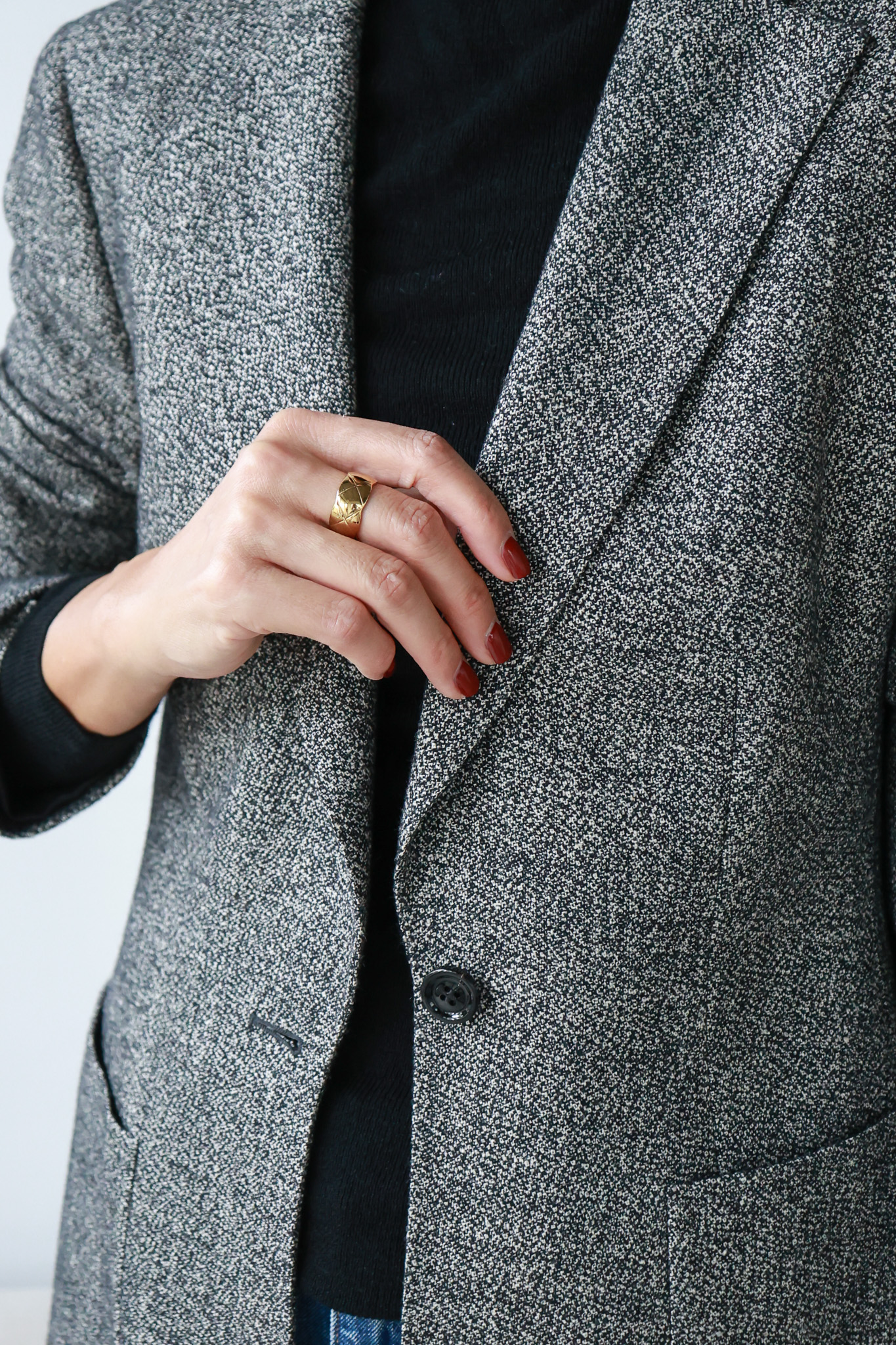 ・薄挺墊肩設計,讓肩膀線條更俐落,展現直角廓型不顯壯