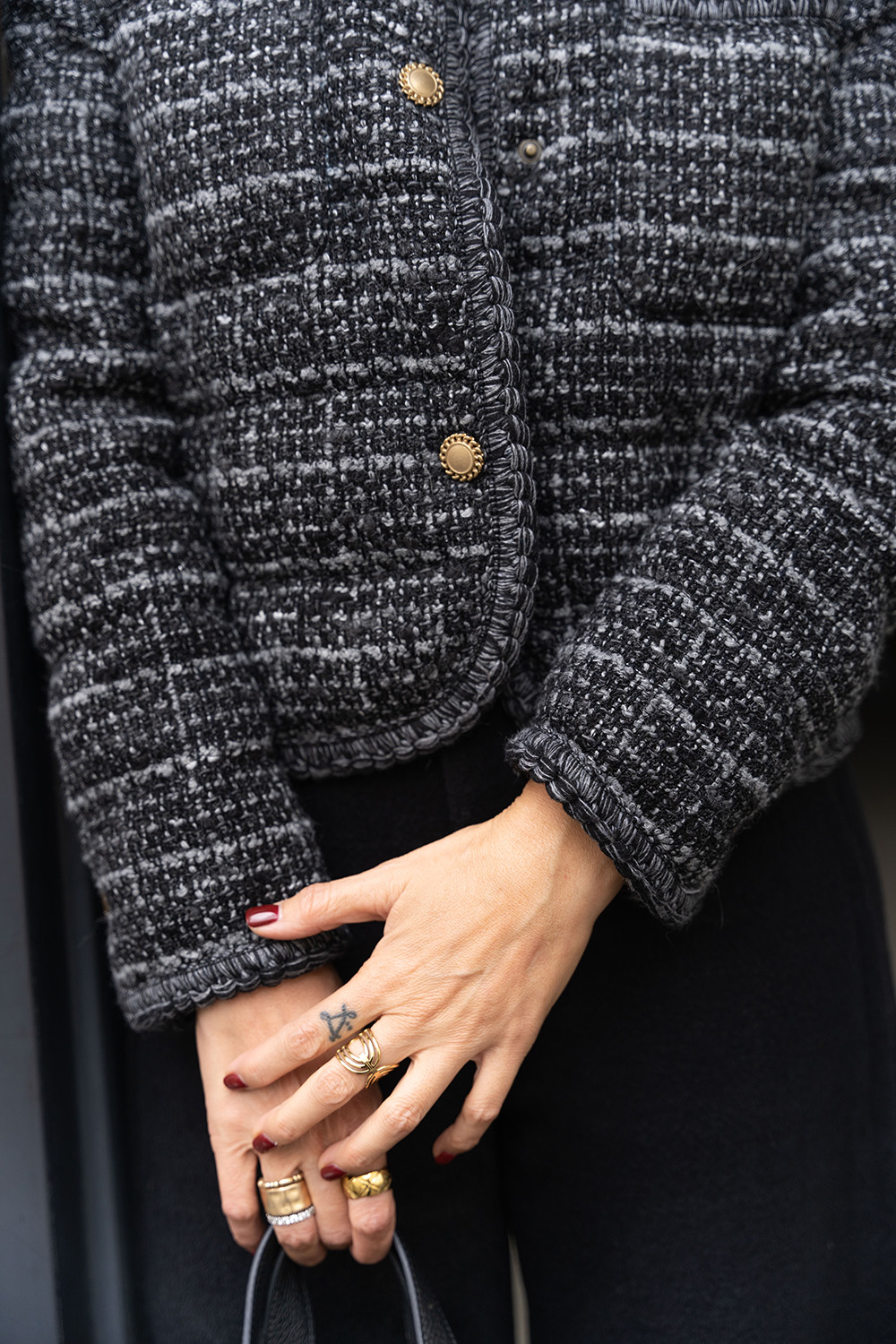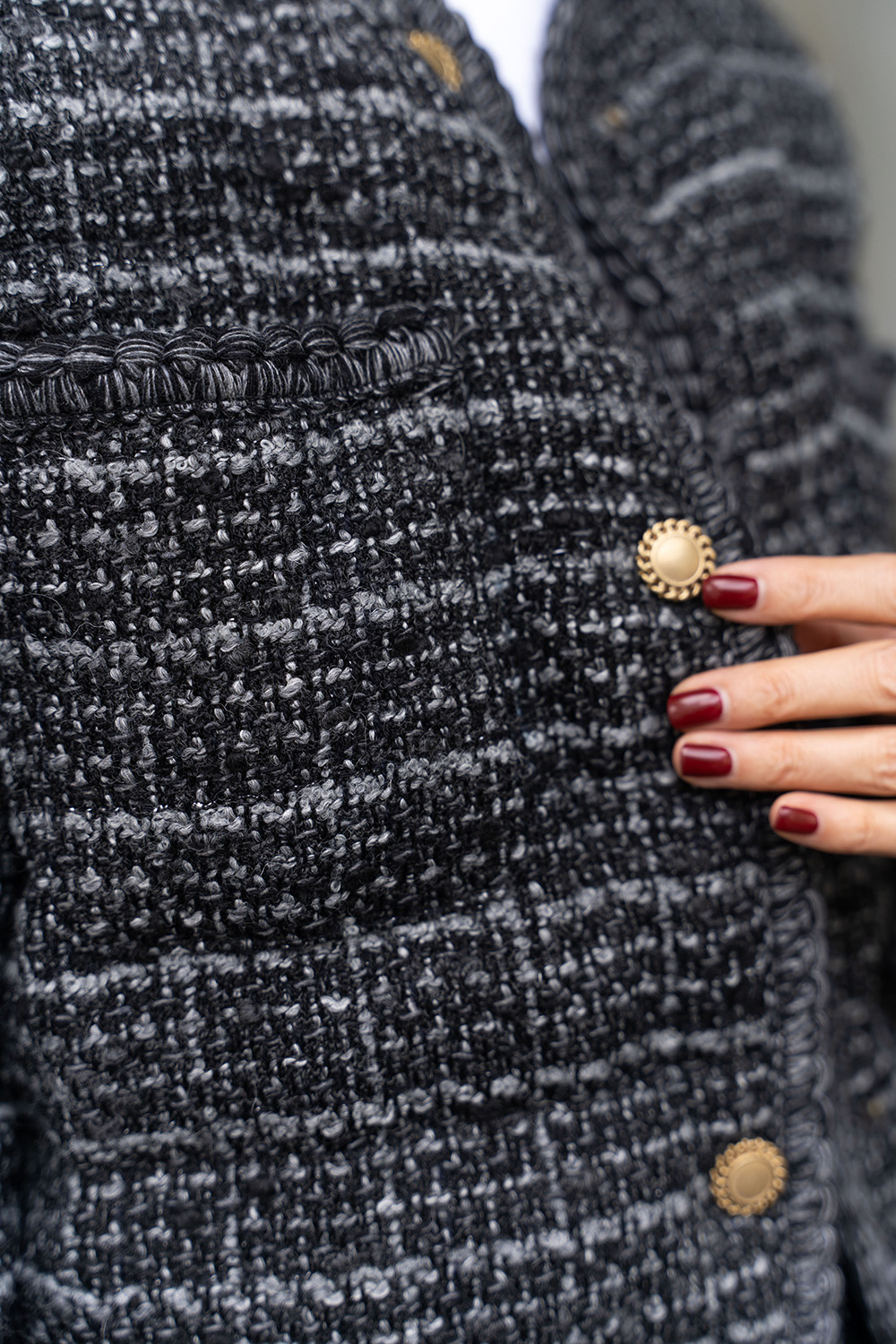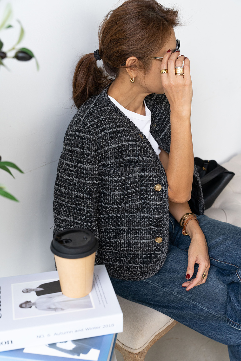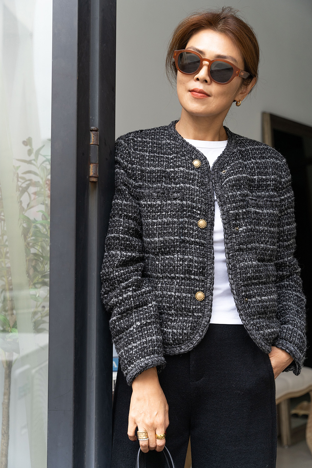 ・立體大圓金釦結合胸前雙口袋設計,提升整體層次與細節