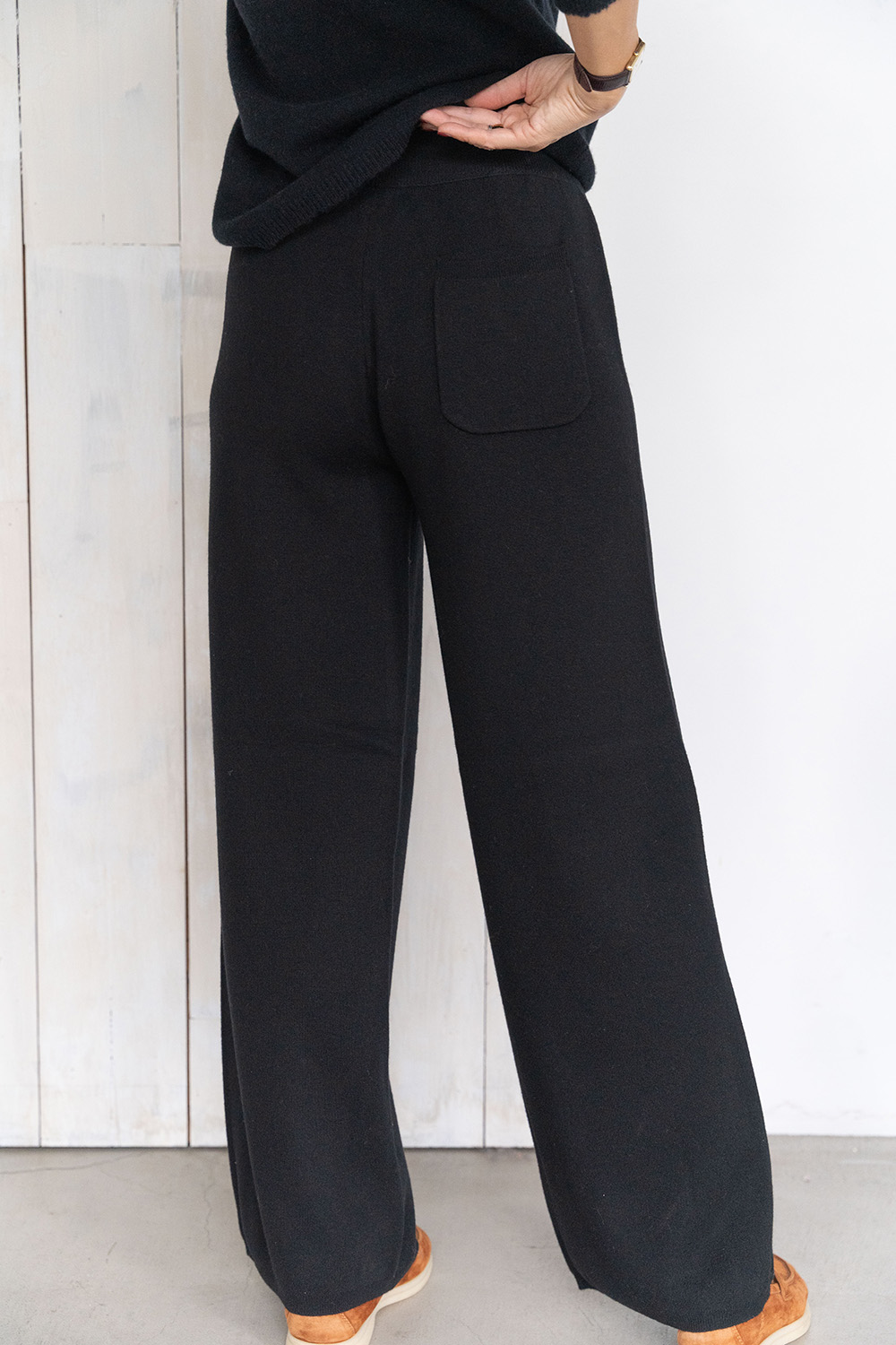 ・後臀口袋設計,增加實用性與視覺立體度,並使用螺紋收邊與褲腳呼應,整體風格一致