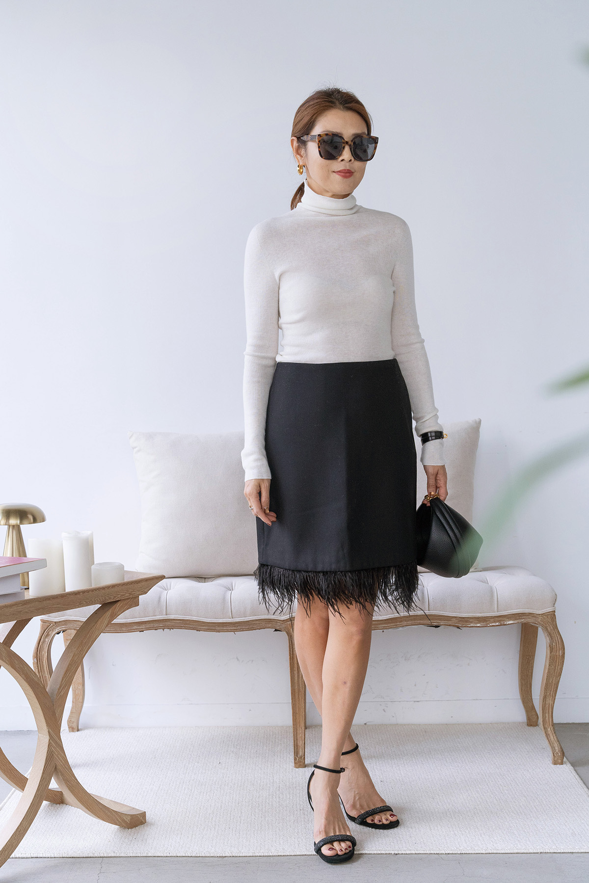 ・及膝長度結合鉛筆版型,自然拉長比例,打造纖細挺拔的下半身