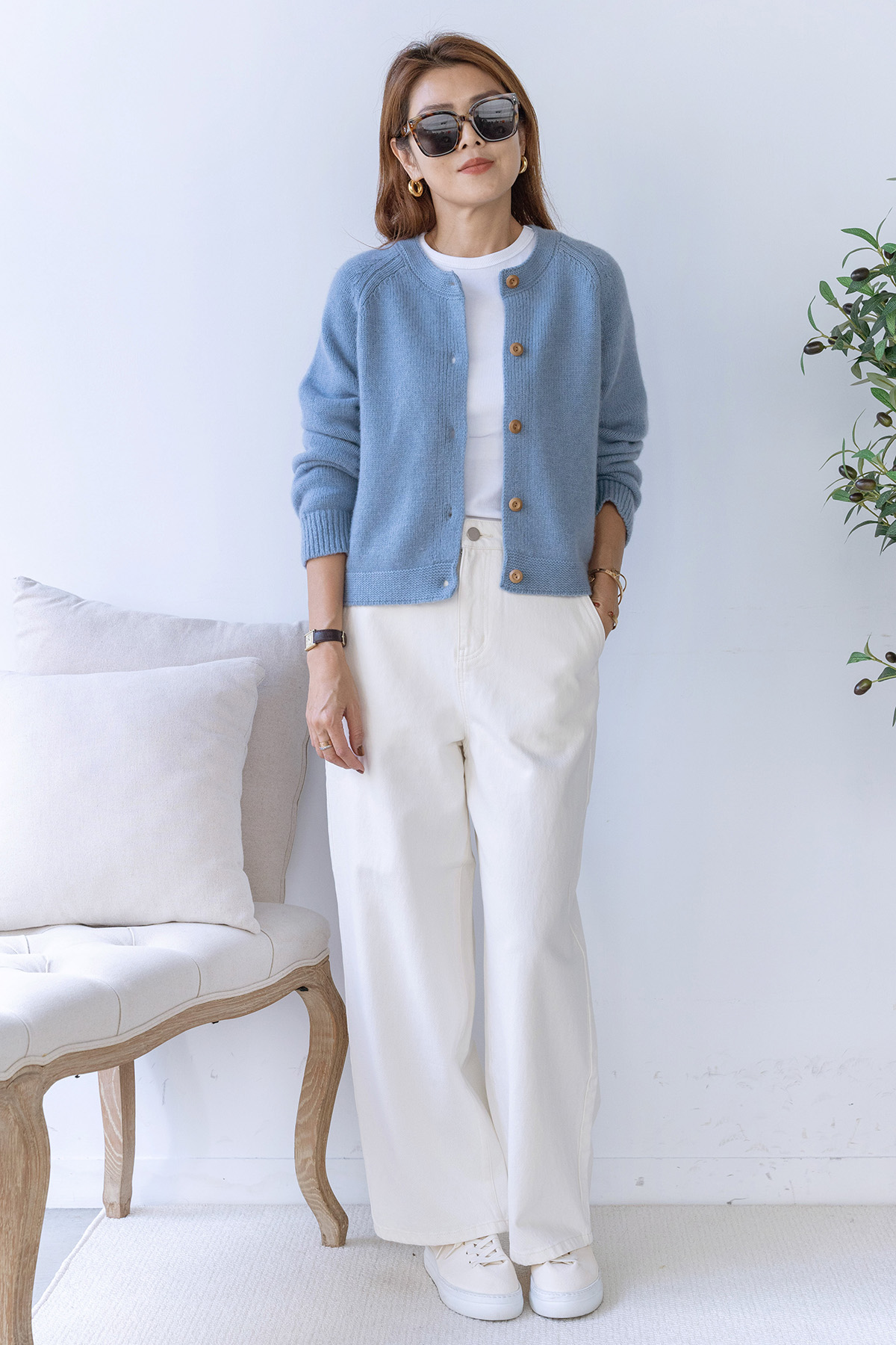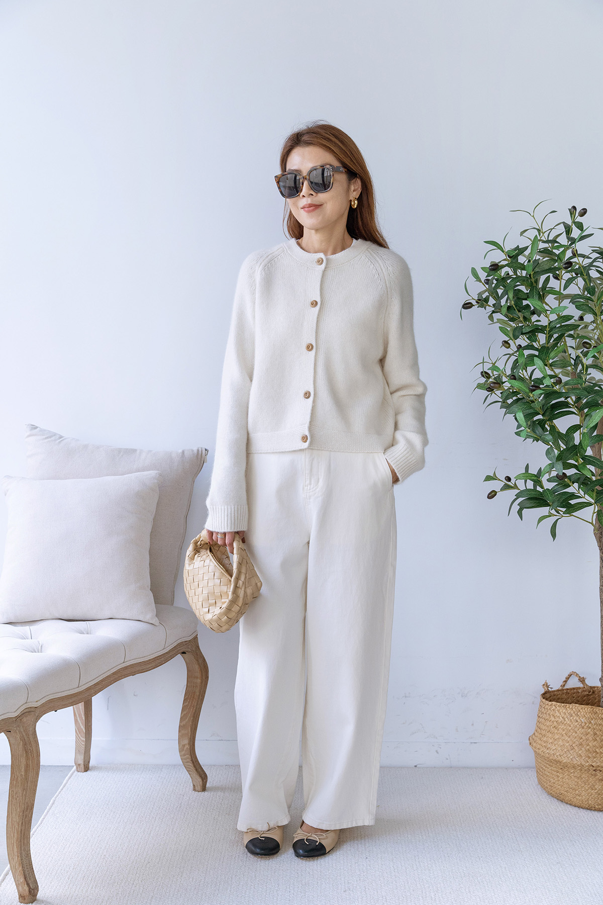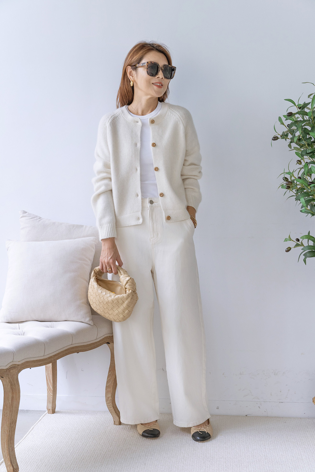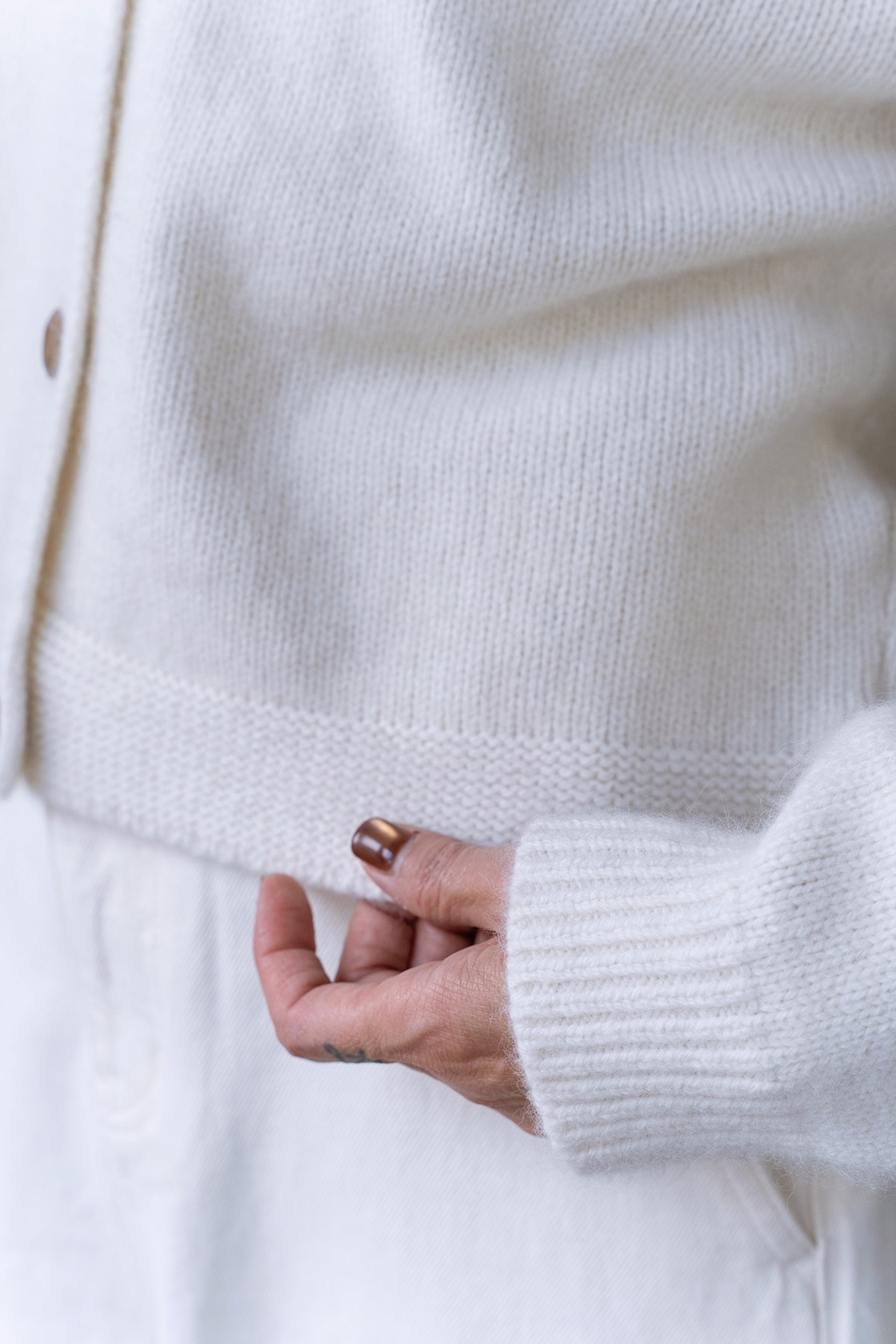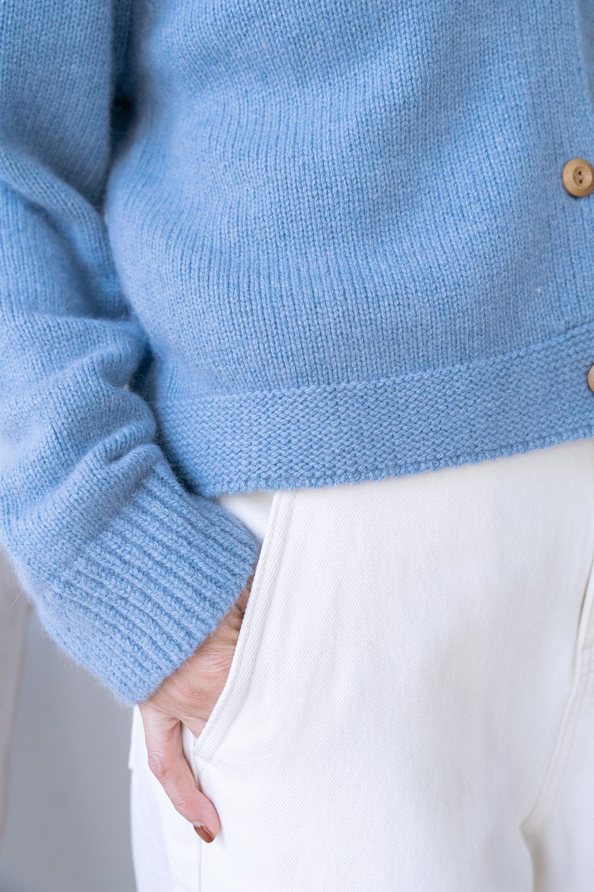 ・下身-100% Cashmere 厚磅羊絨直筒長褲—白 / 寬鬆微闊腿牛仔褲