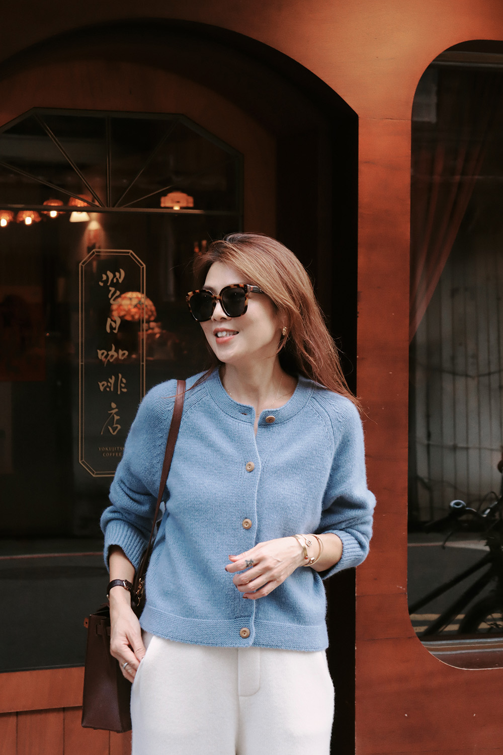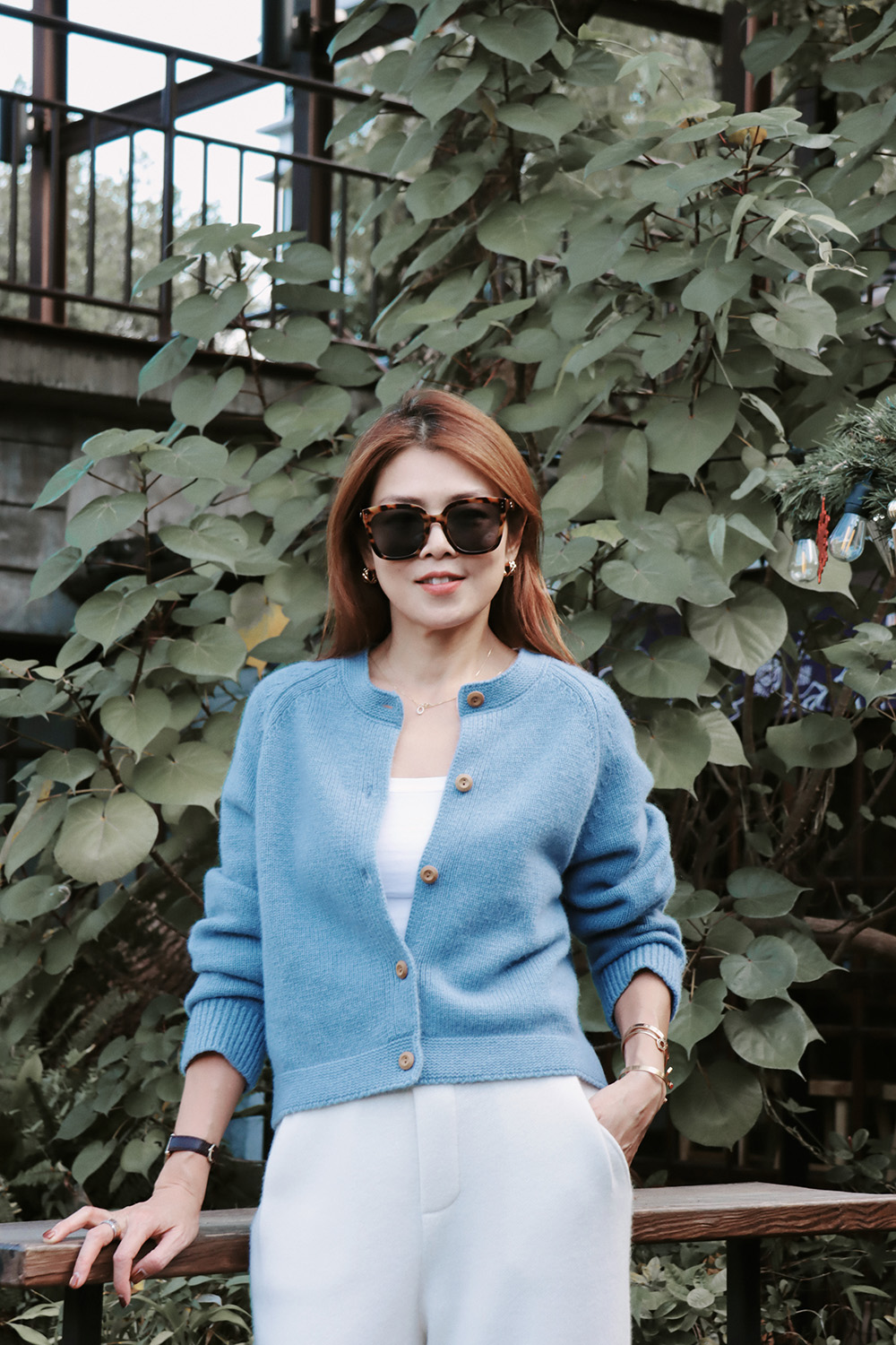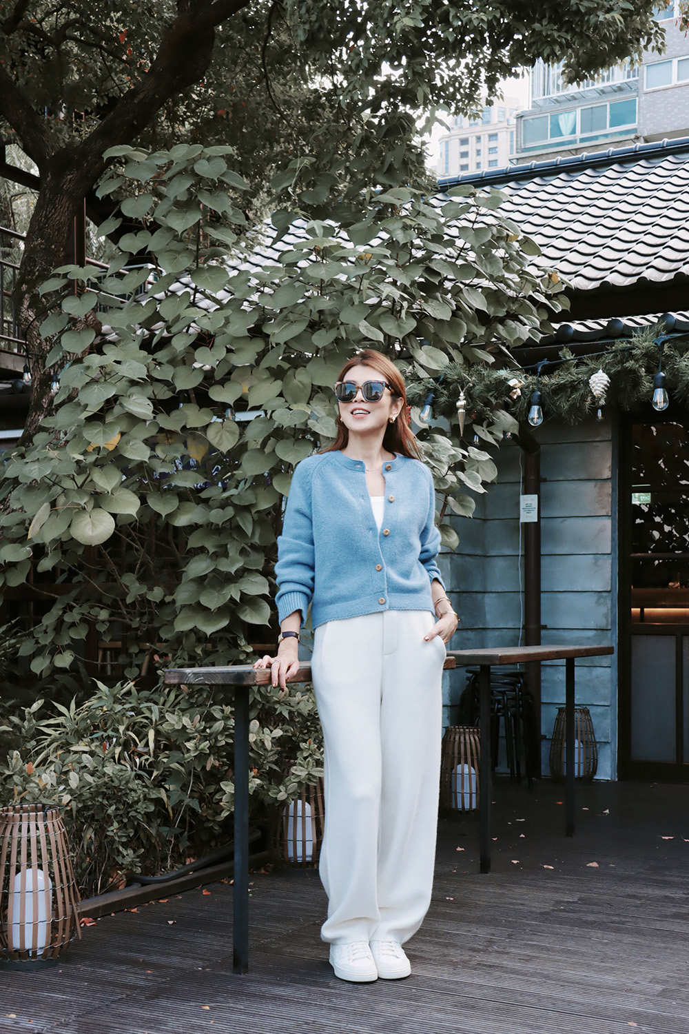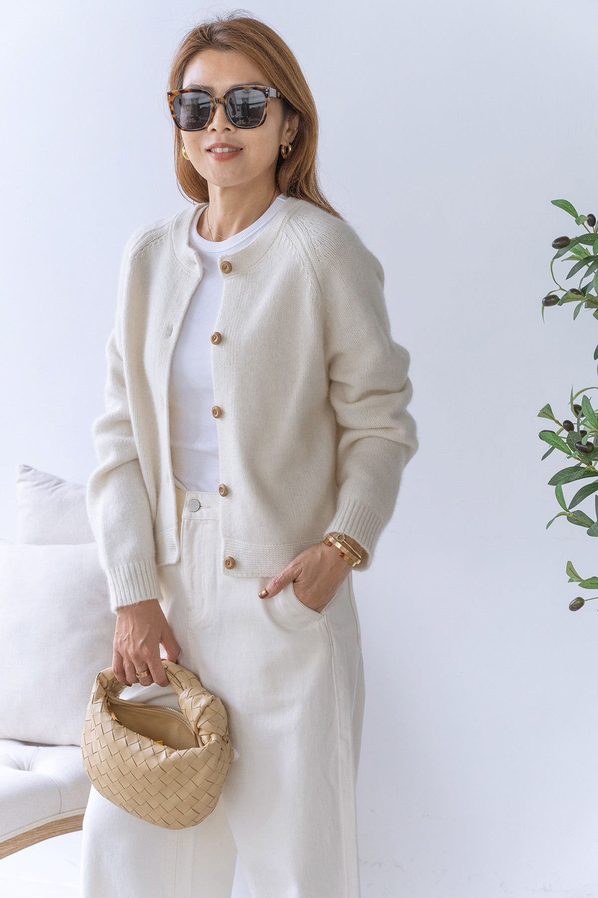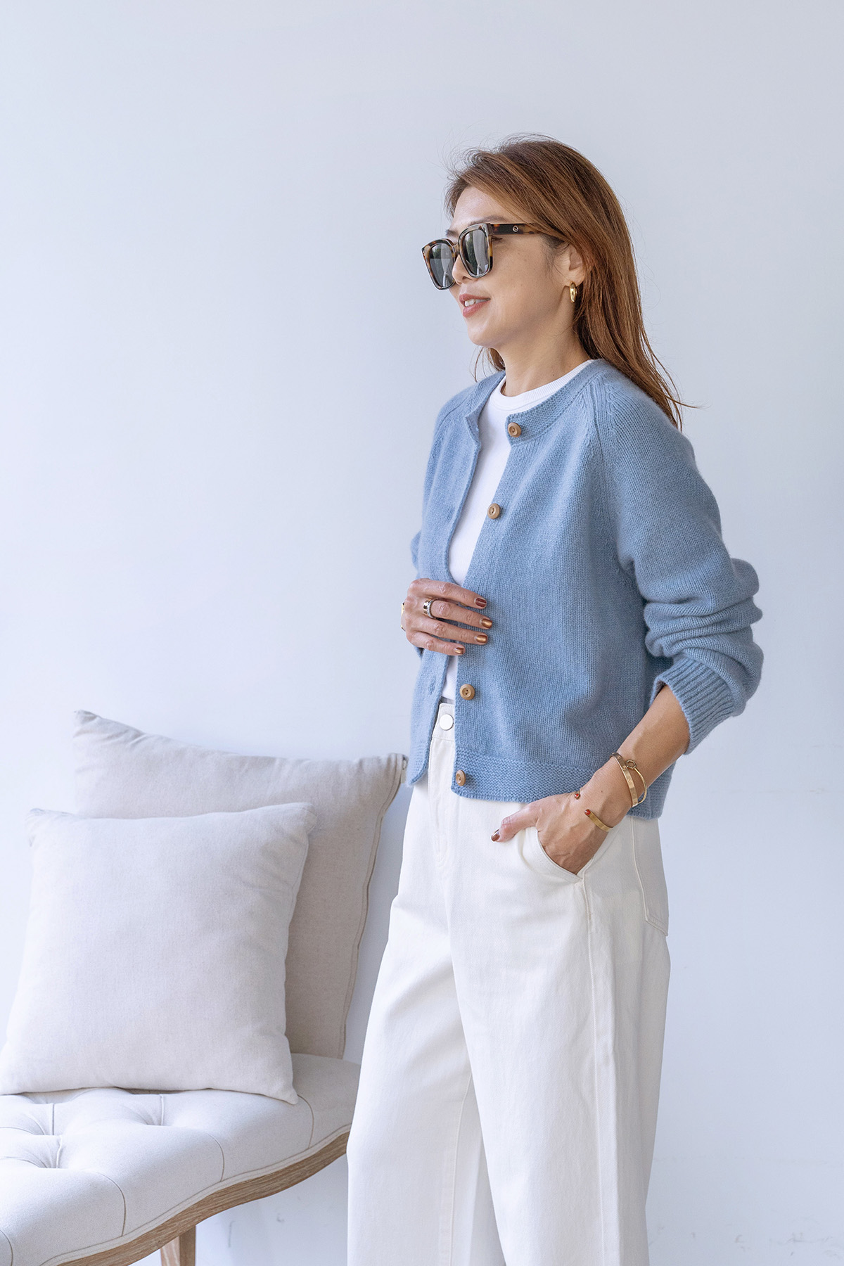 ・下身-100% Cashmere 厚磅羊絨直筒長褲—白 / 寬鬆微闊腿牛仔褲