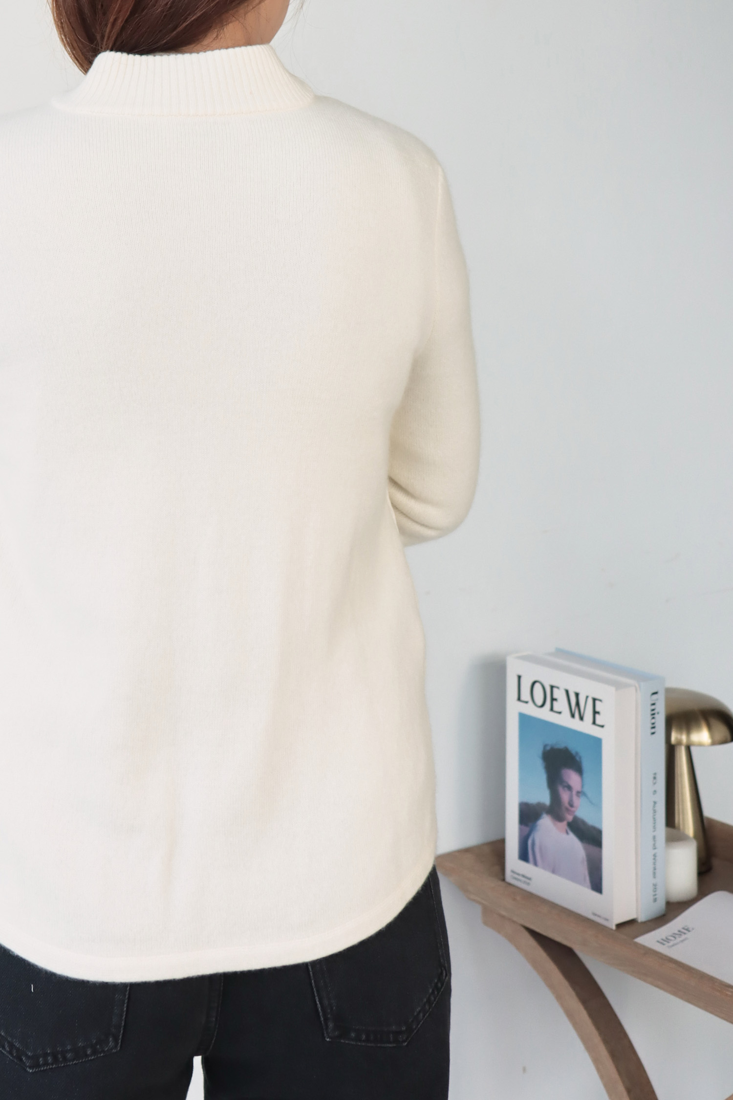 ・上衣-100% Cashmere 圓領捲邊長袖上衣