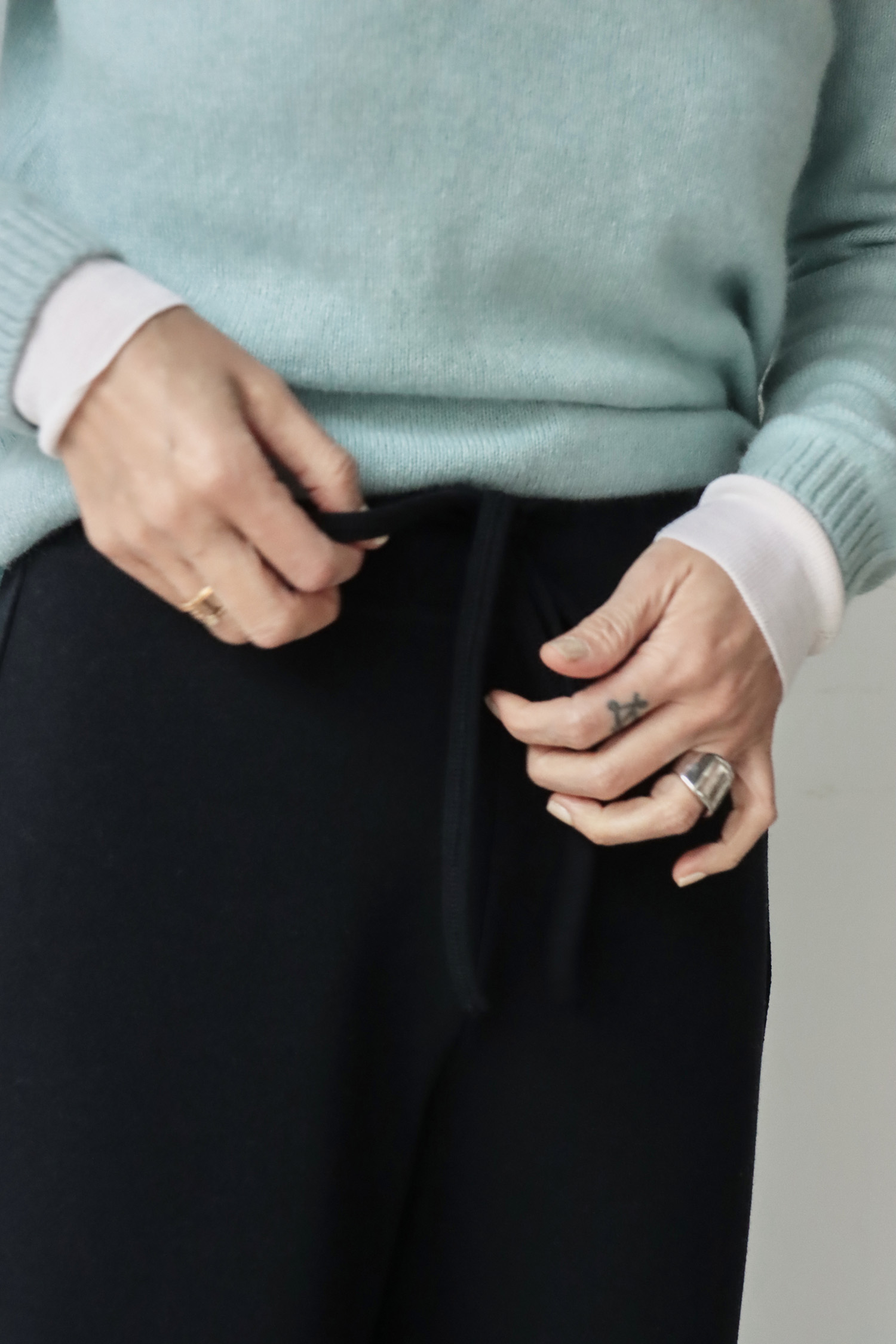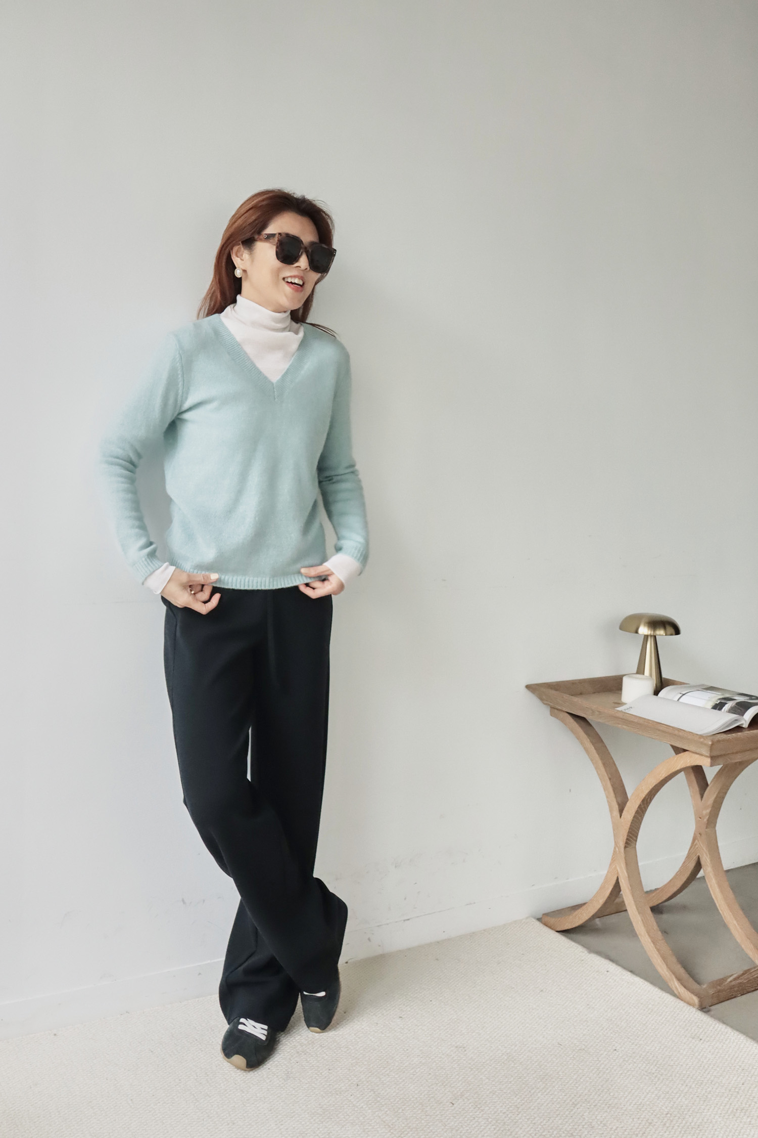 ・上身-完美下巴線V領100% Cashmere毛衣—湖水藍