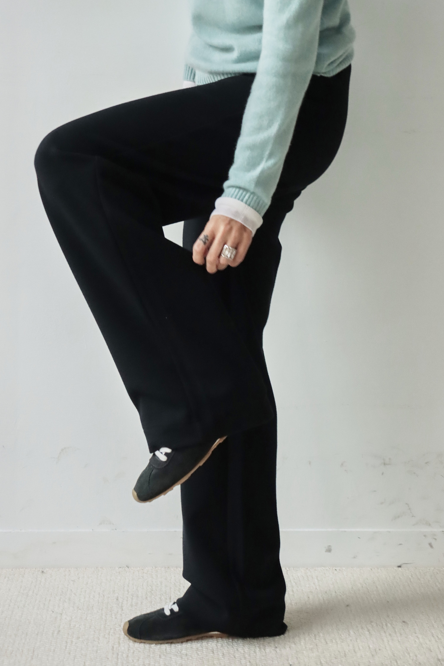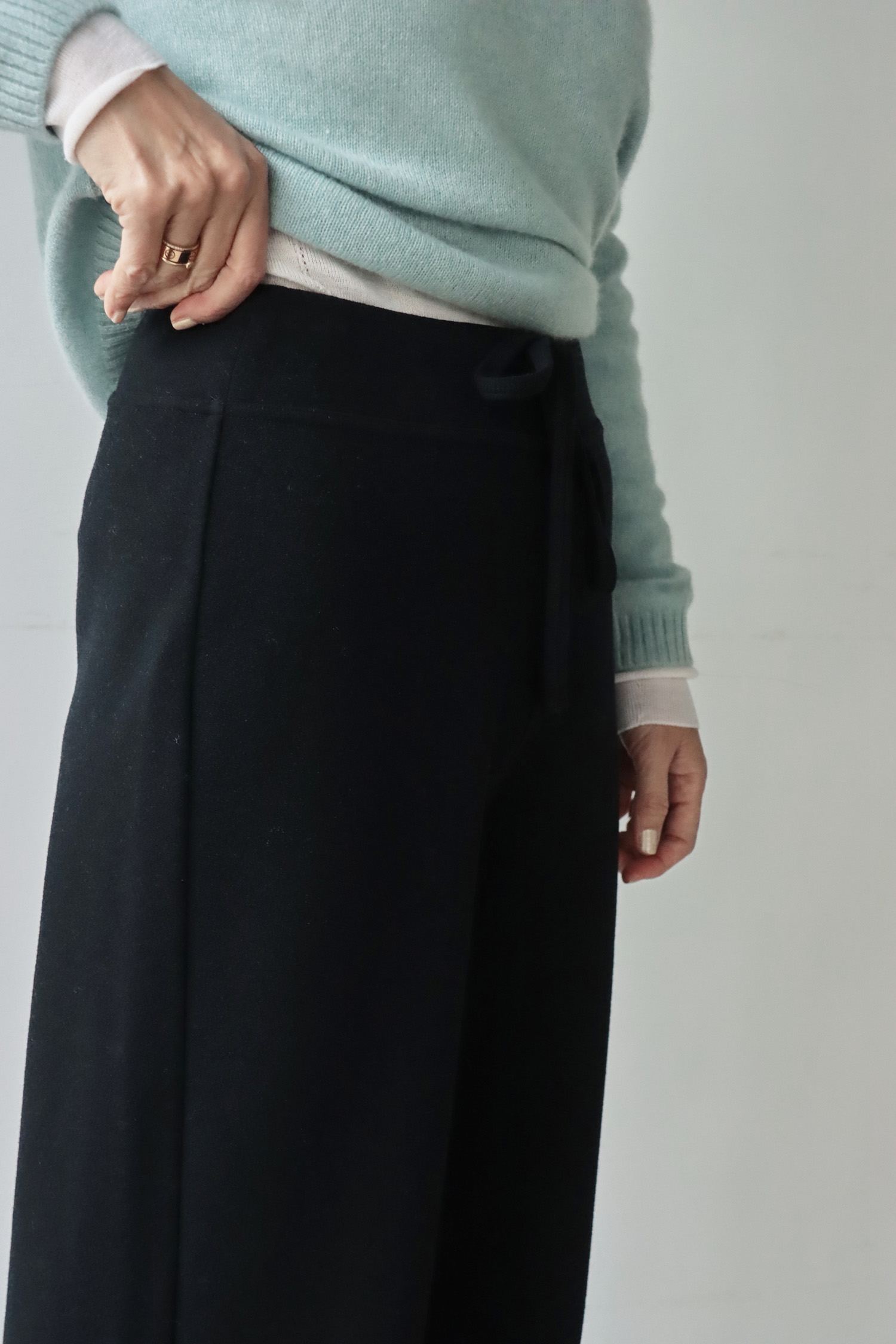 ・寬腰頭設計提供良好包覆度,搭配可調節繩細節,兼顧舒適度與穿著彈性;褲長落地的剪裁自然拉長腿部比例,俐落垂順的線條讓比例更顯修長,整體輪廓寬鬆有型。