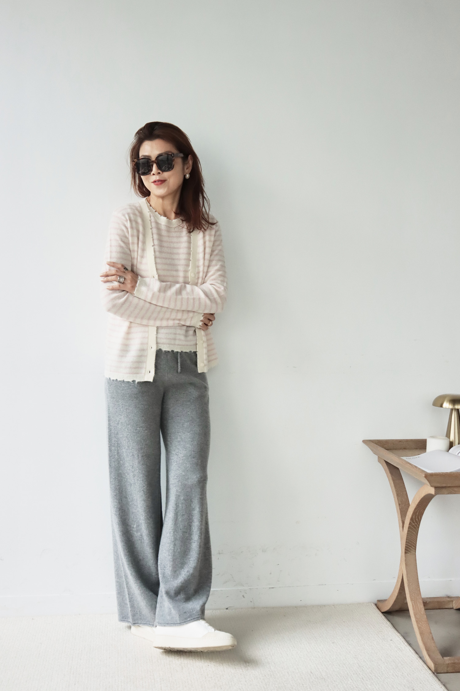 ・下身-100% Cashmere 下擺捲邊羊絨長褲—灰