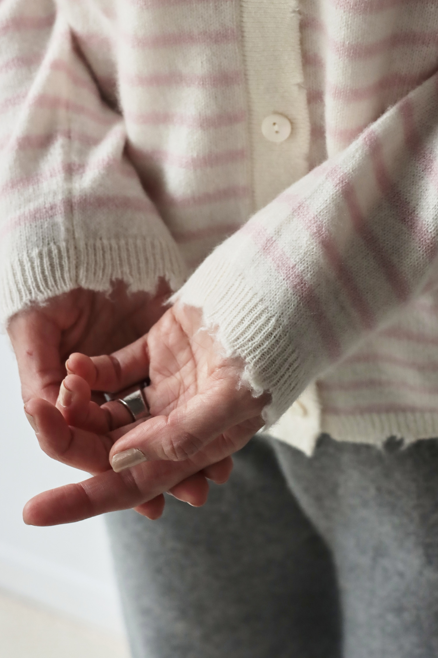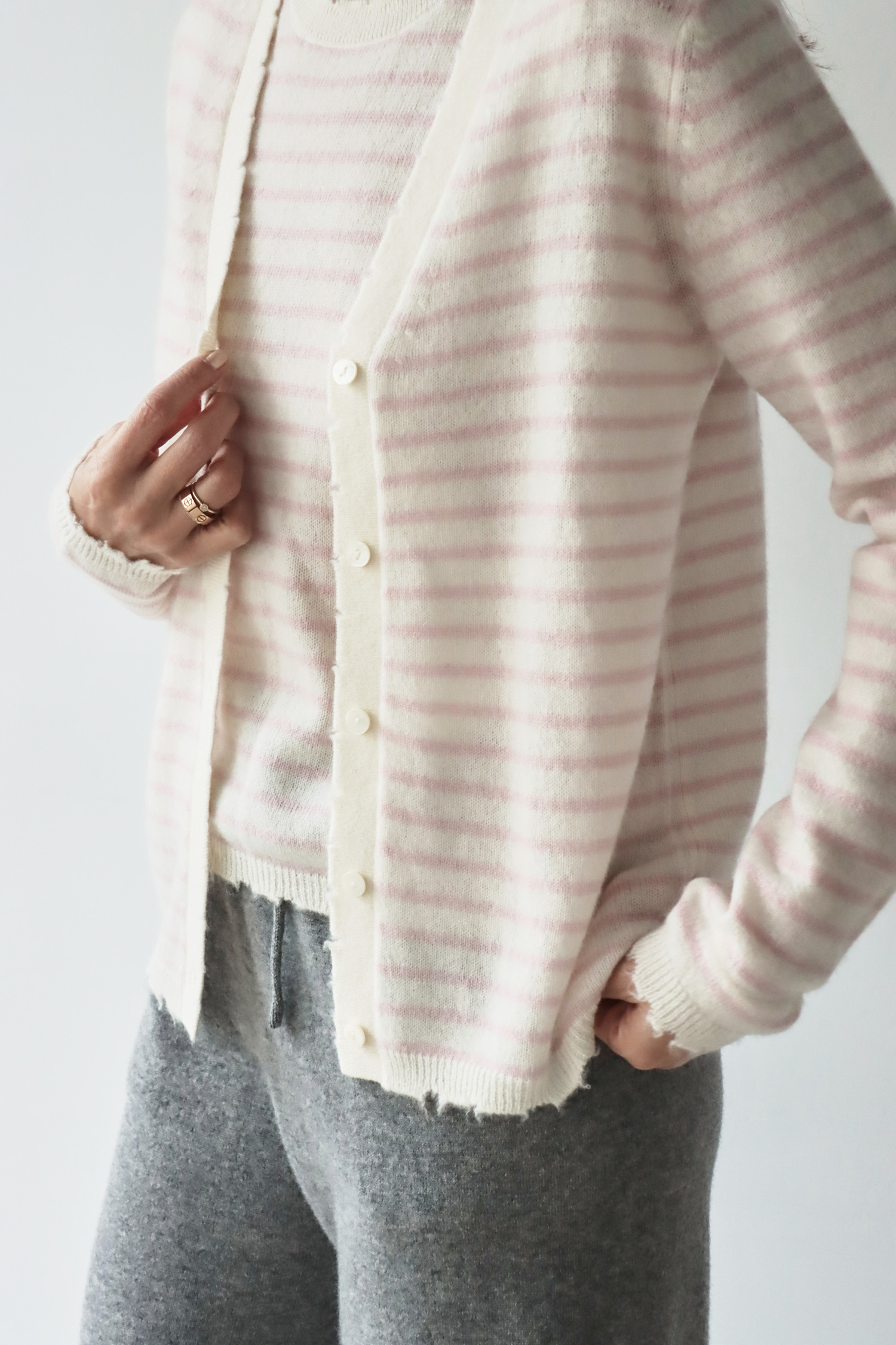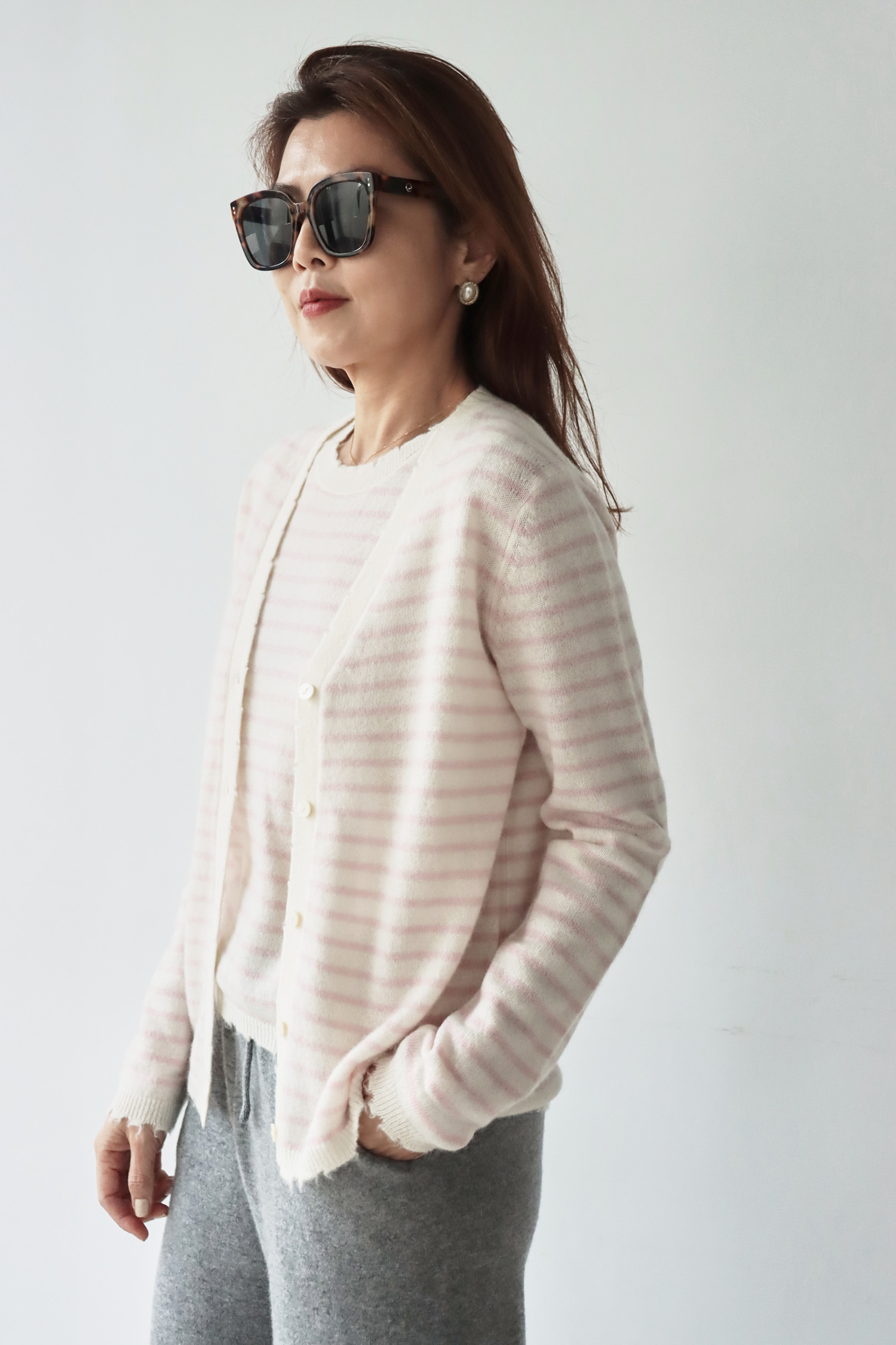 ・上衣-Macaron 條紋羊絨無袖上衣—粉