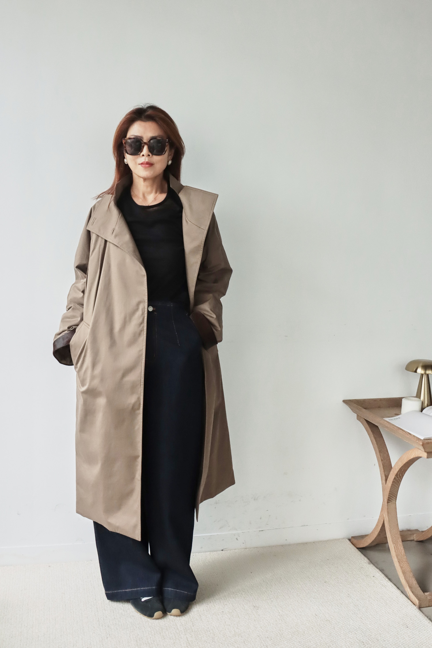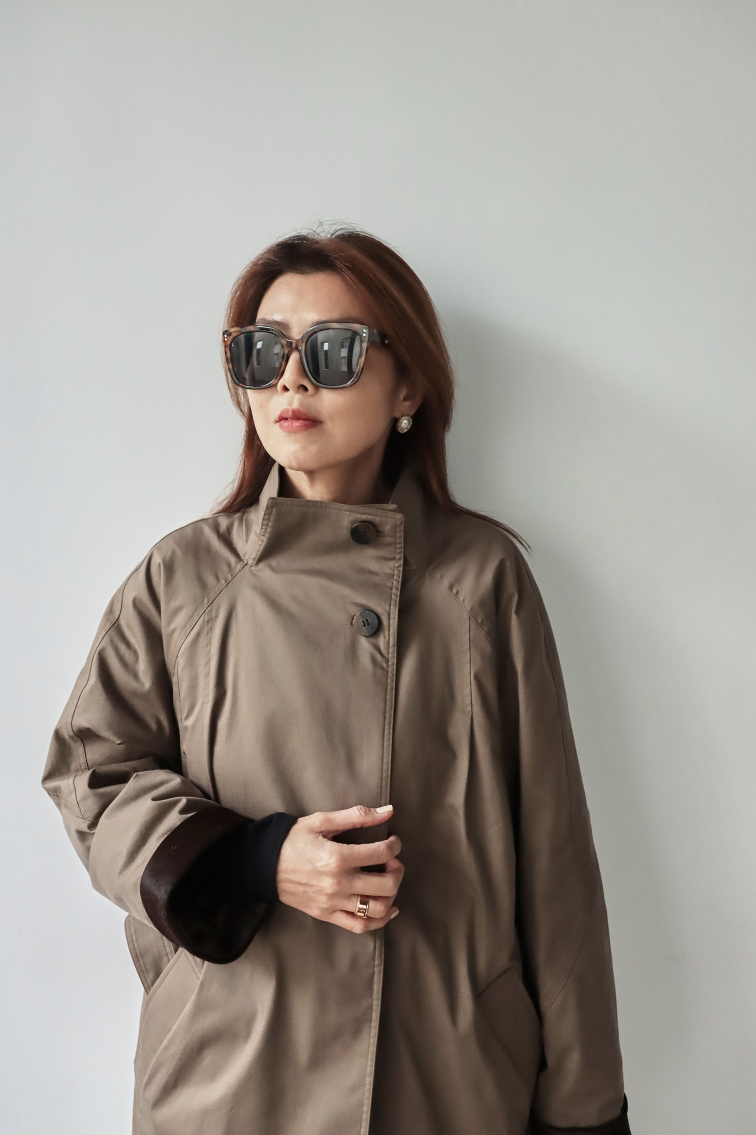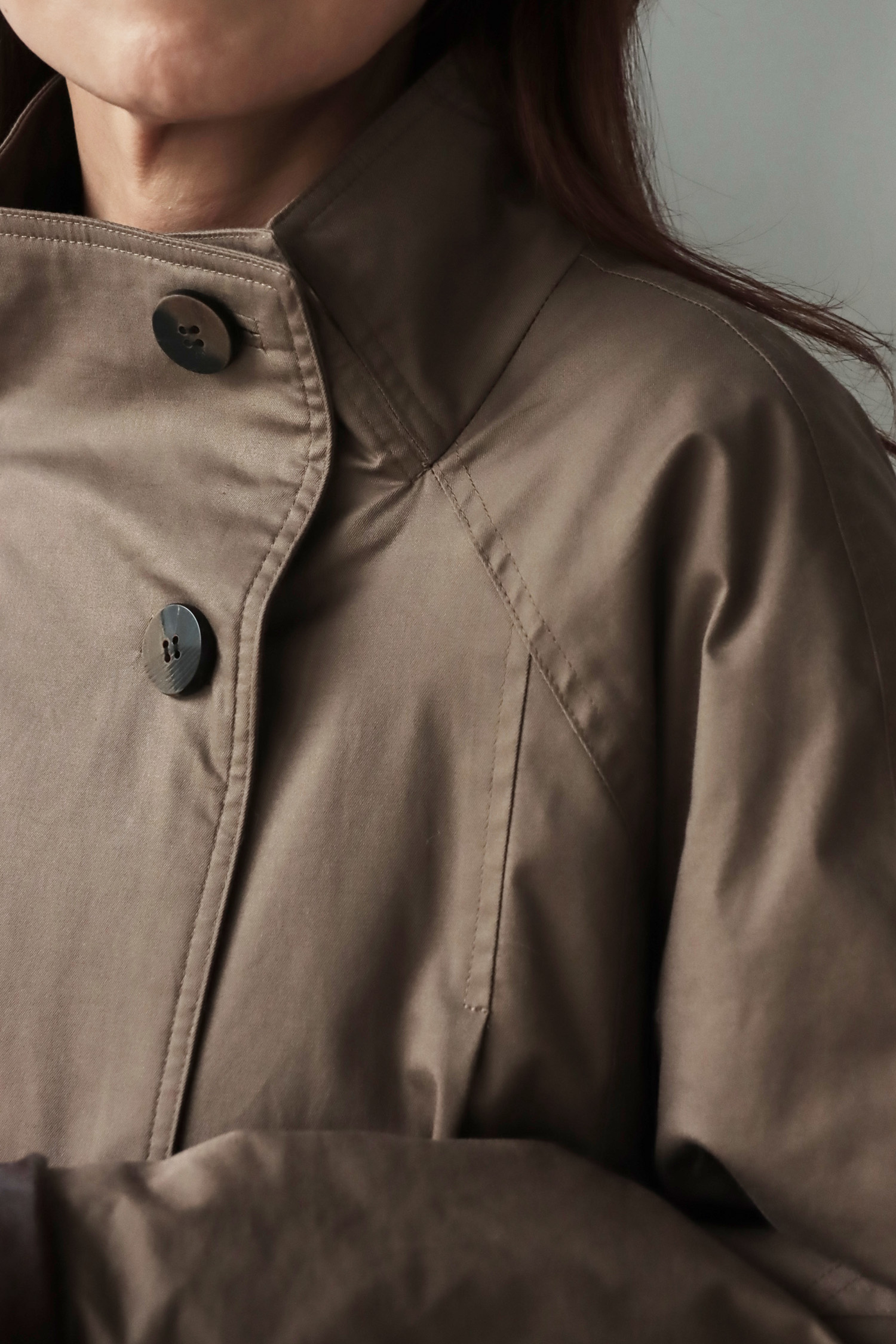 ・外觀俐落如風衣,內裡卻是蓬鬆保軟的羽絨結構,完美結合造型感與實穿性。表布觸感細緻挺拔,低調中展現高級質感,內裡填充高品質鵝絨,輕盈卻具備優異保暖度;細節上以磁釦設計提升穿脫便利性,袖口搭配胎牛皮毛增添層次與保暖效果,領口可立領亦可翻領,隨造型自由變化;長版剪裁修飾身形、防風性佳,是一件外表簡約優雅、內在溫暖厚實的秋冬質感單品。