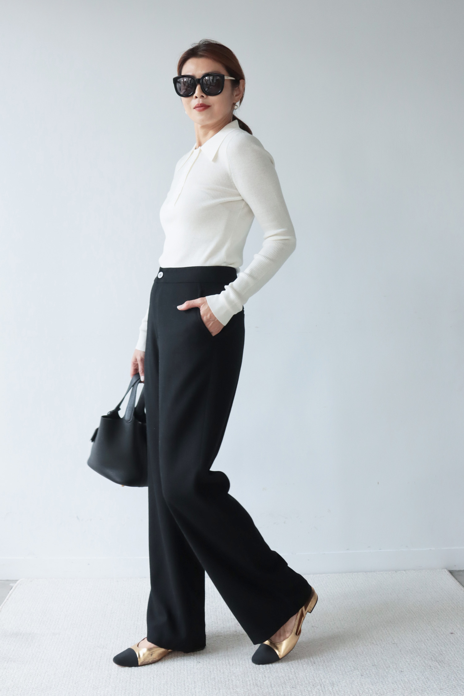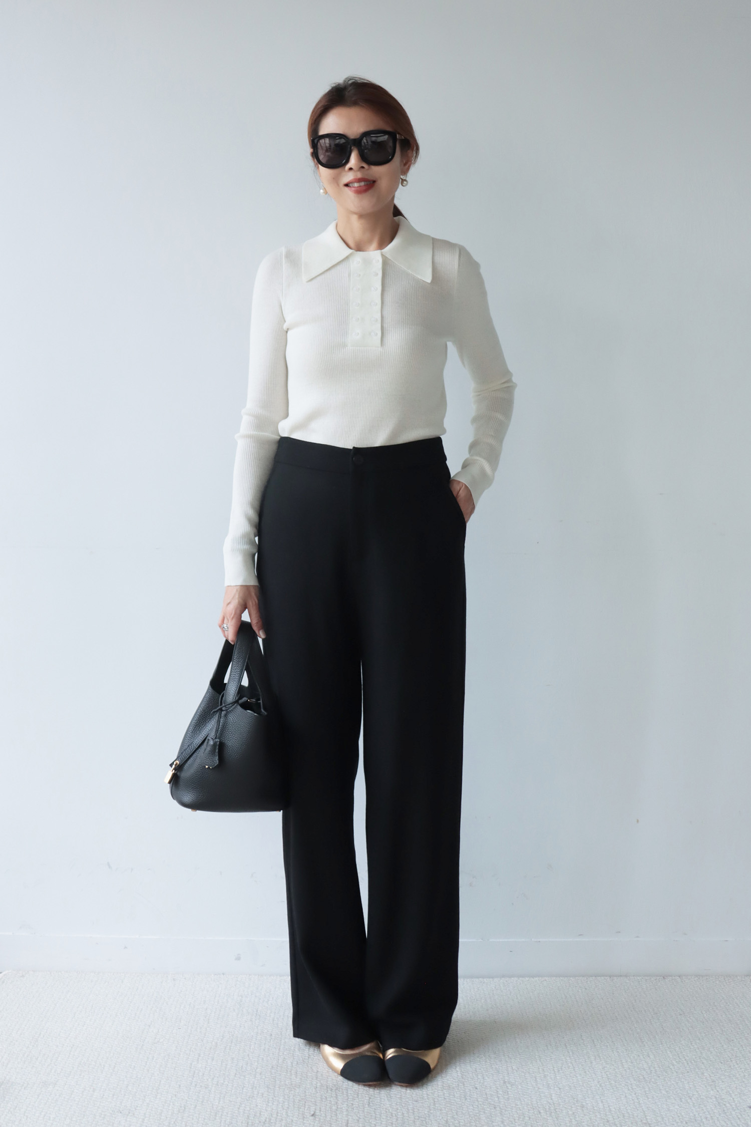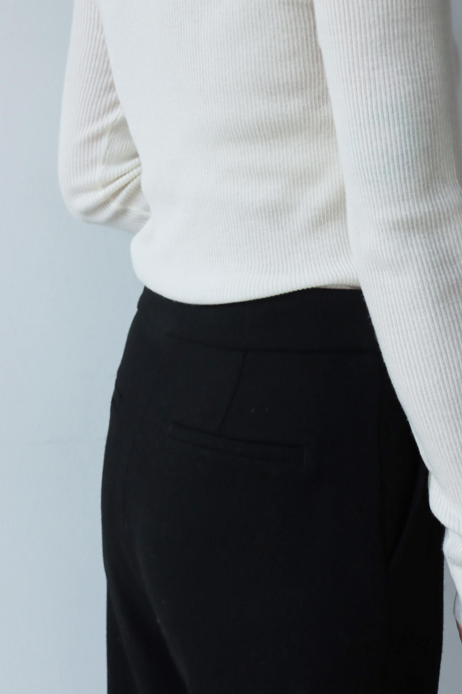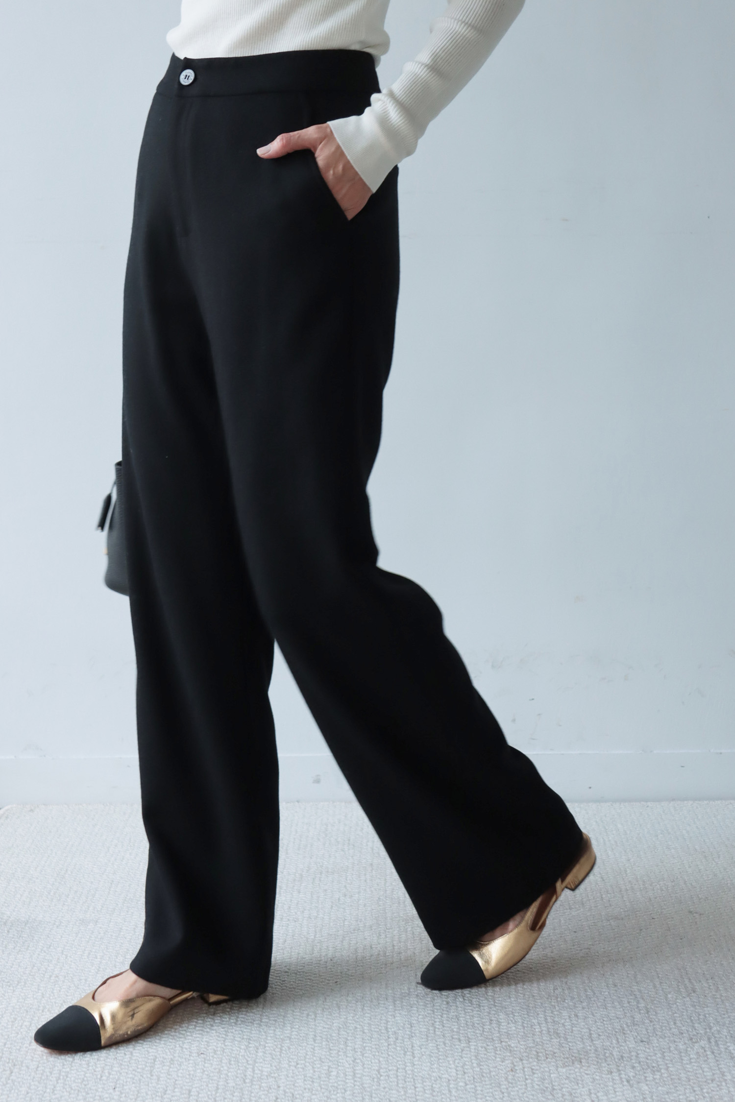 ・選用100% 羊毛面料,質地細緻柔軟,內裡親膚滑順,提升整體穿著舒適度。單釦西裝褲腰頭設計簡約俐落,直筒版型展現自然垂墜感,長度精準切齊地面,營造流暢又不拘束的修長線條,能在正式與休閒之間自由切換,展現隨興卻有質感的多面穿搭。