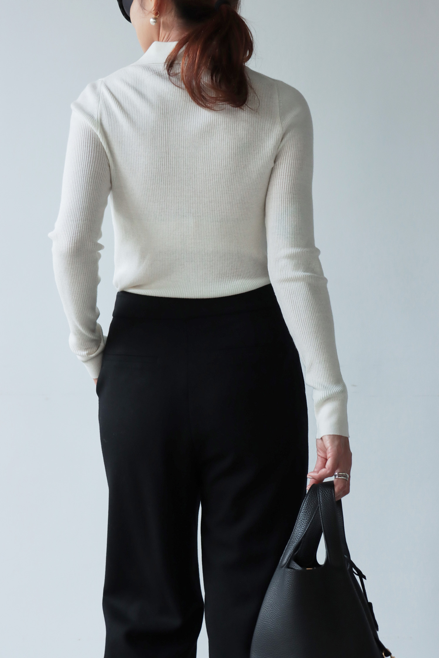 ・上衣-POLO領雙排釦半門襟毛衣—白