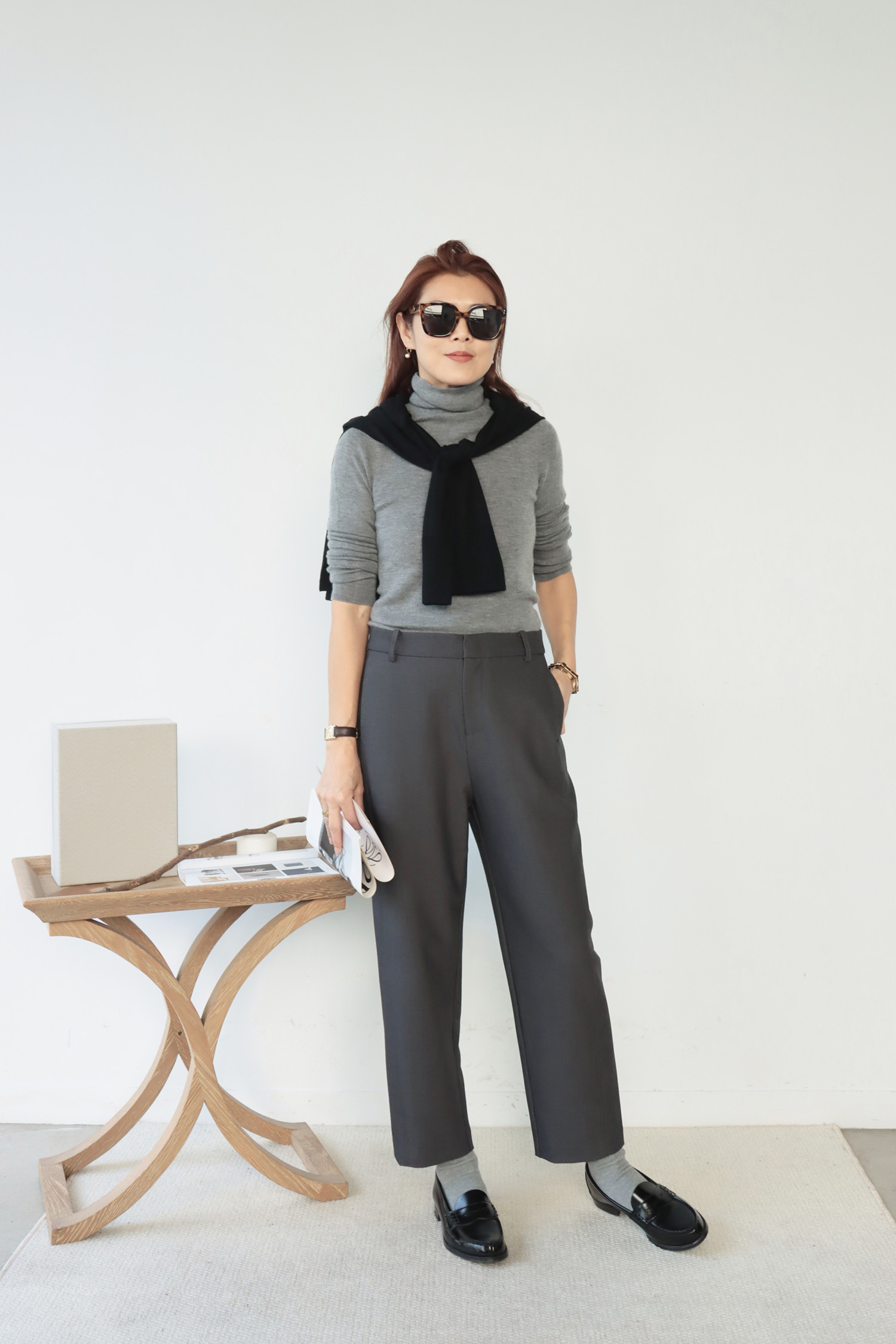 ・上衣-100% Cashmere 純羊絨基礎高領毛衣—淺灰