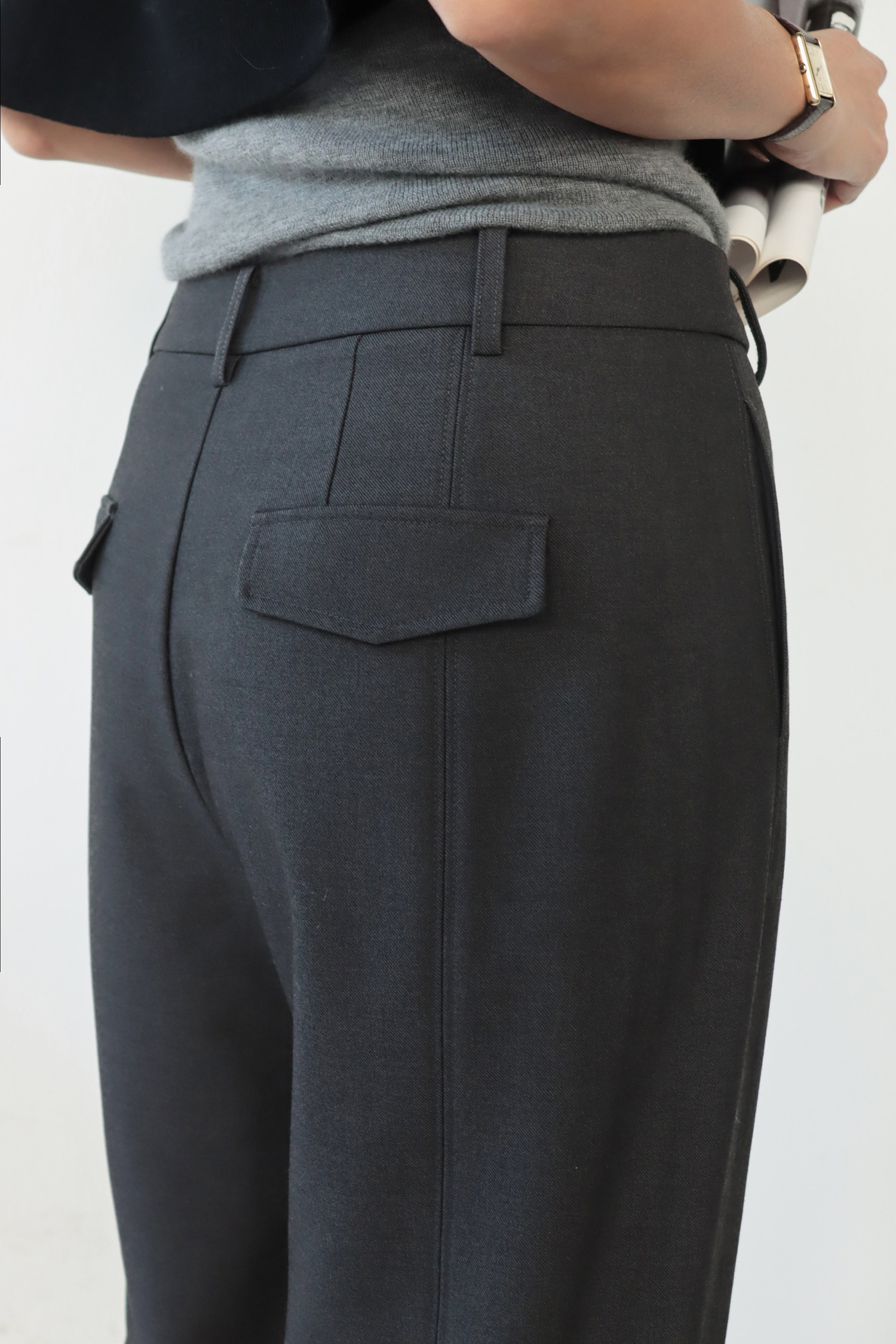 ・採用多元混紡面料兼具彈性、透氣與柔軟質感,打造全天舒適穿著體驗。背面設計壓線細節,提升褲型的結構與層次感,結合後臀裝飾翻蓋巧妙強化立體視覺,營造自然翹臀效果,高腰與寬鬆臀腿剪裁不僅提升穿著自由度,也自然修飾腿部比例,打造輕鬆俐落的輪廓。
