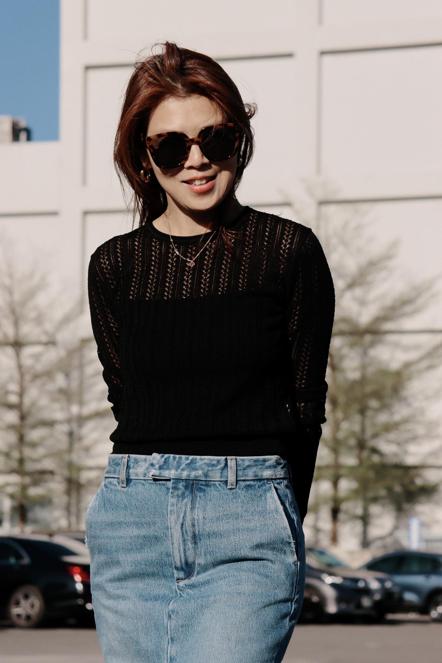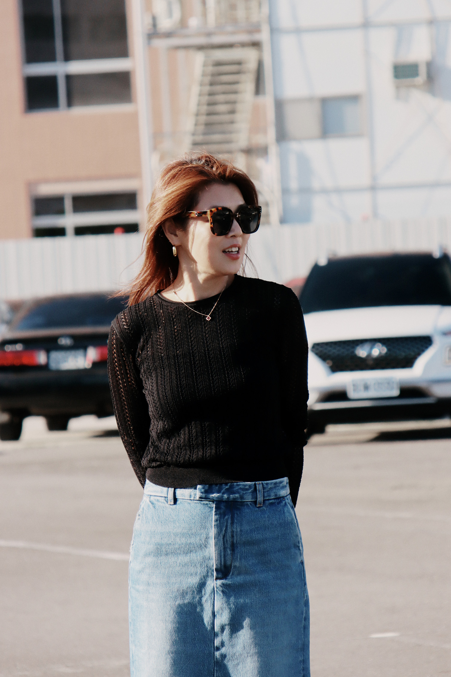 ・下身-Billie 藍調丹寧前開岔長裙
